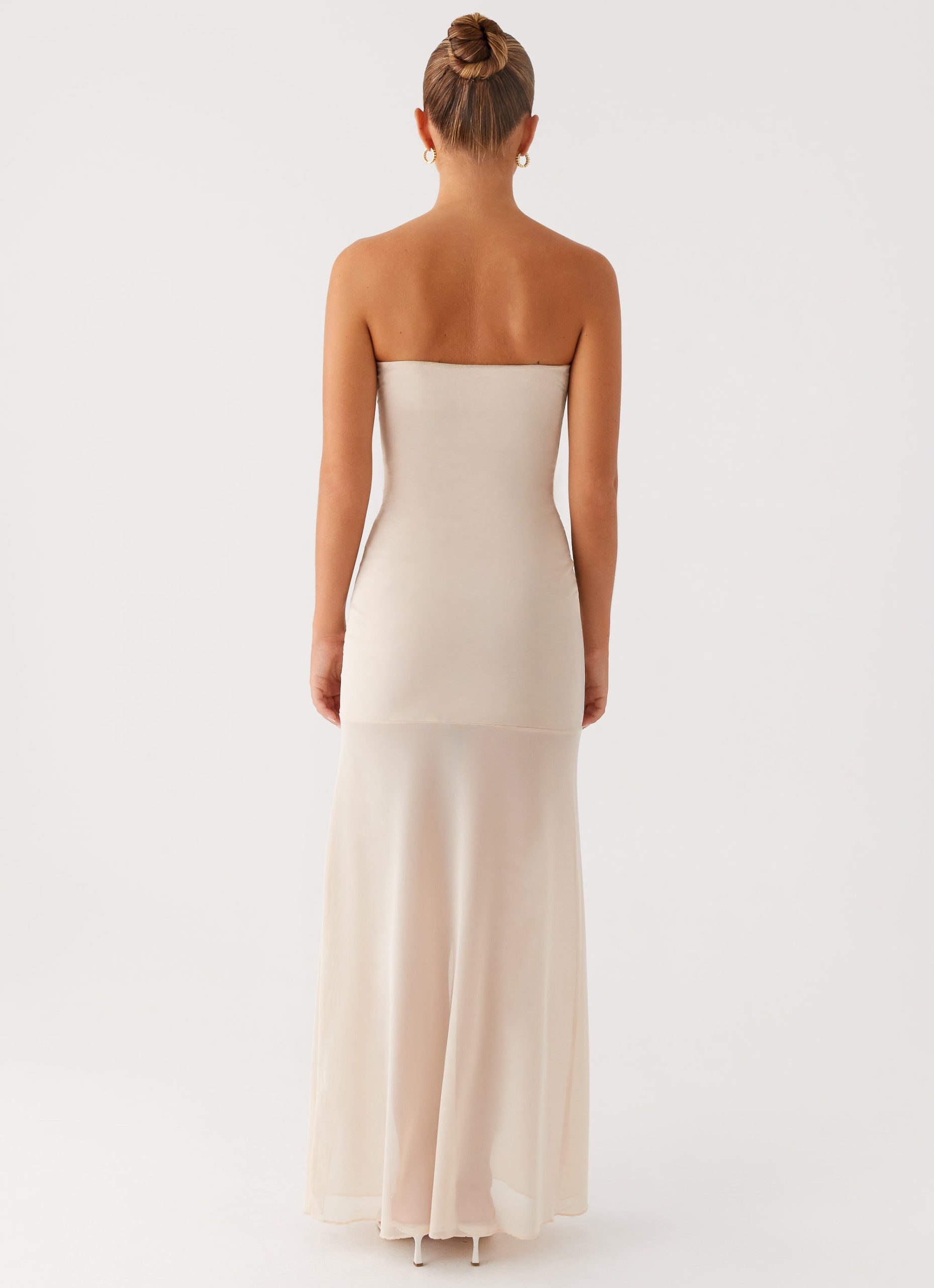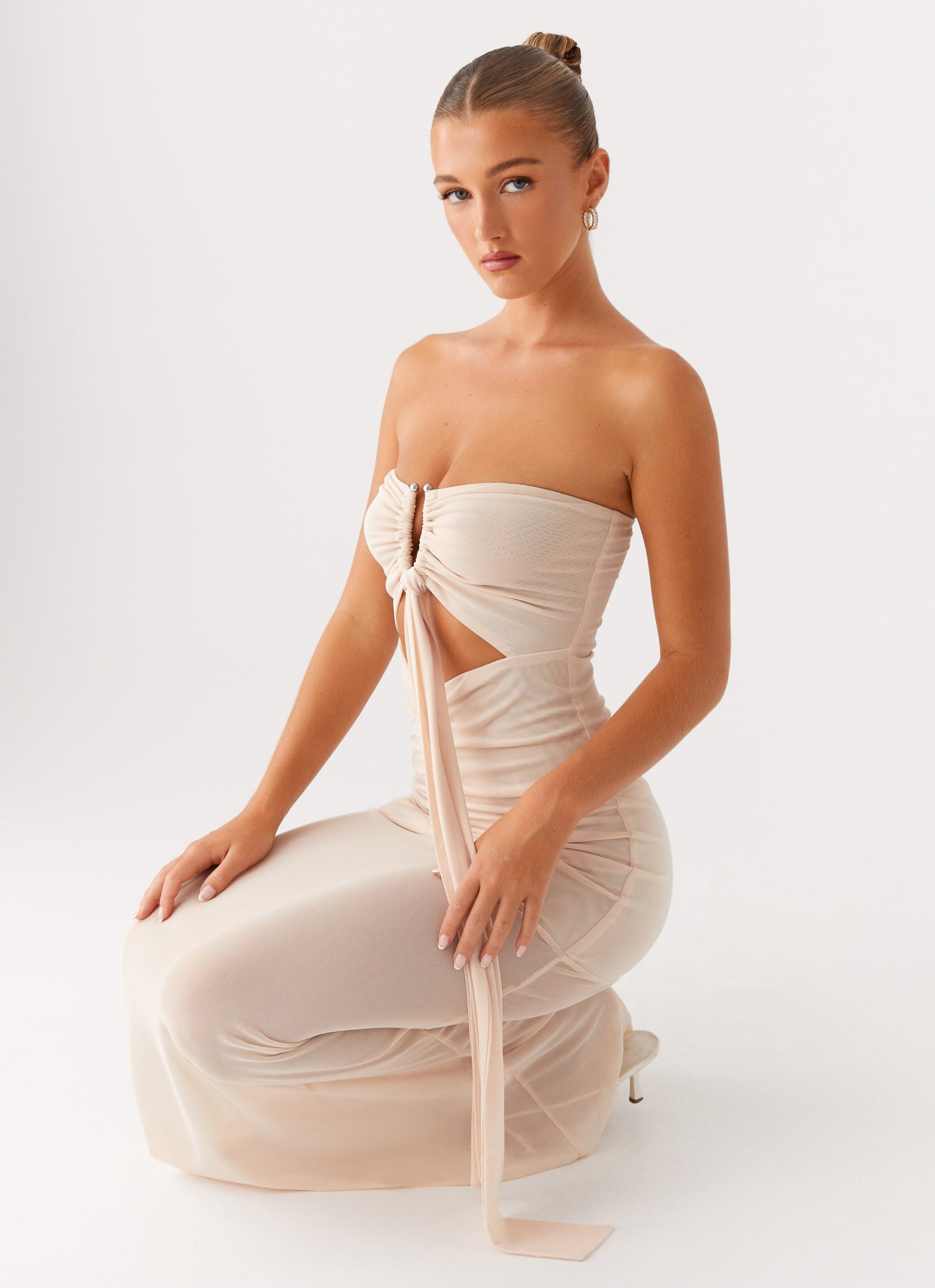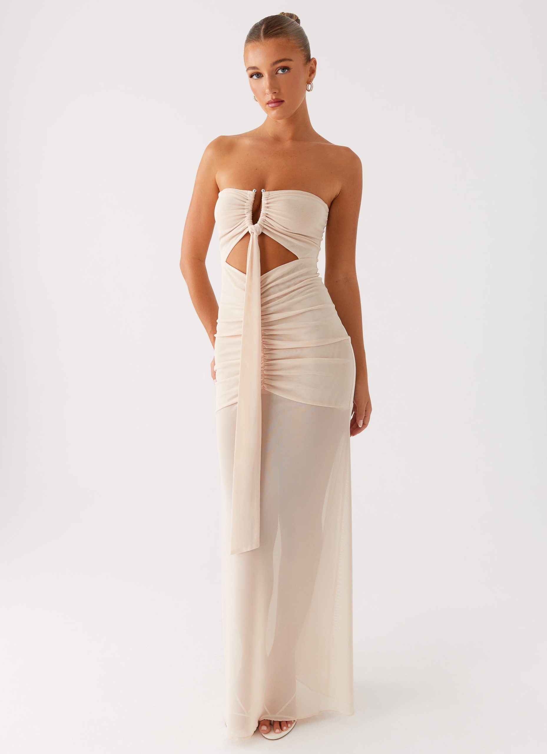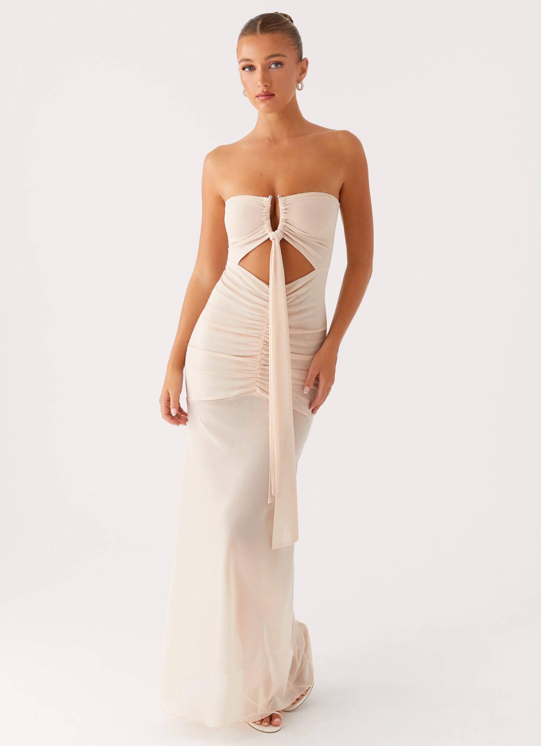 Pure allure. The Lovie Maxi Dress features a strapless. straight neckline with front strap detailing that adds a touch of boldness. Sleek and striking. it’s made for nights where you steal the spotlight and keep the energy alive from dusk till dawn.