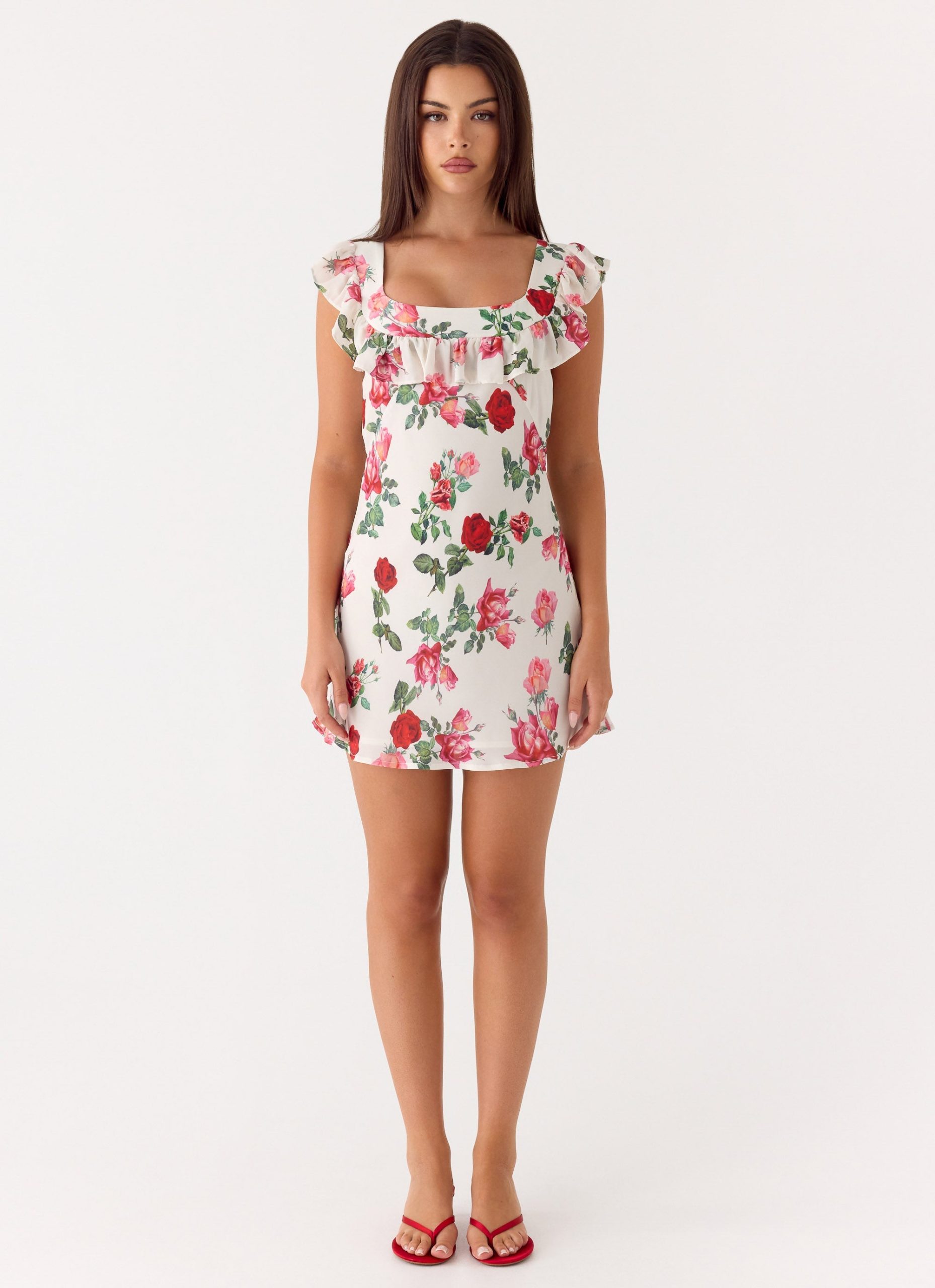The Malina Mini Dress is made for golden-hour moments that carry into the night. Cut on the bias for a fluid. body-skimming silhouette. it features a delicate frill neckline and an adjustable back tie for a custom fit. Finished with an exclusive print. this mini-length style moves effortlessly with every step.