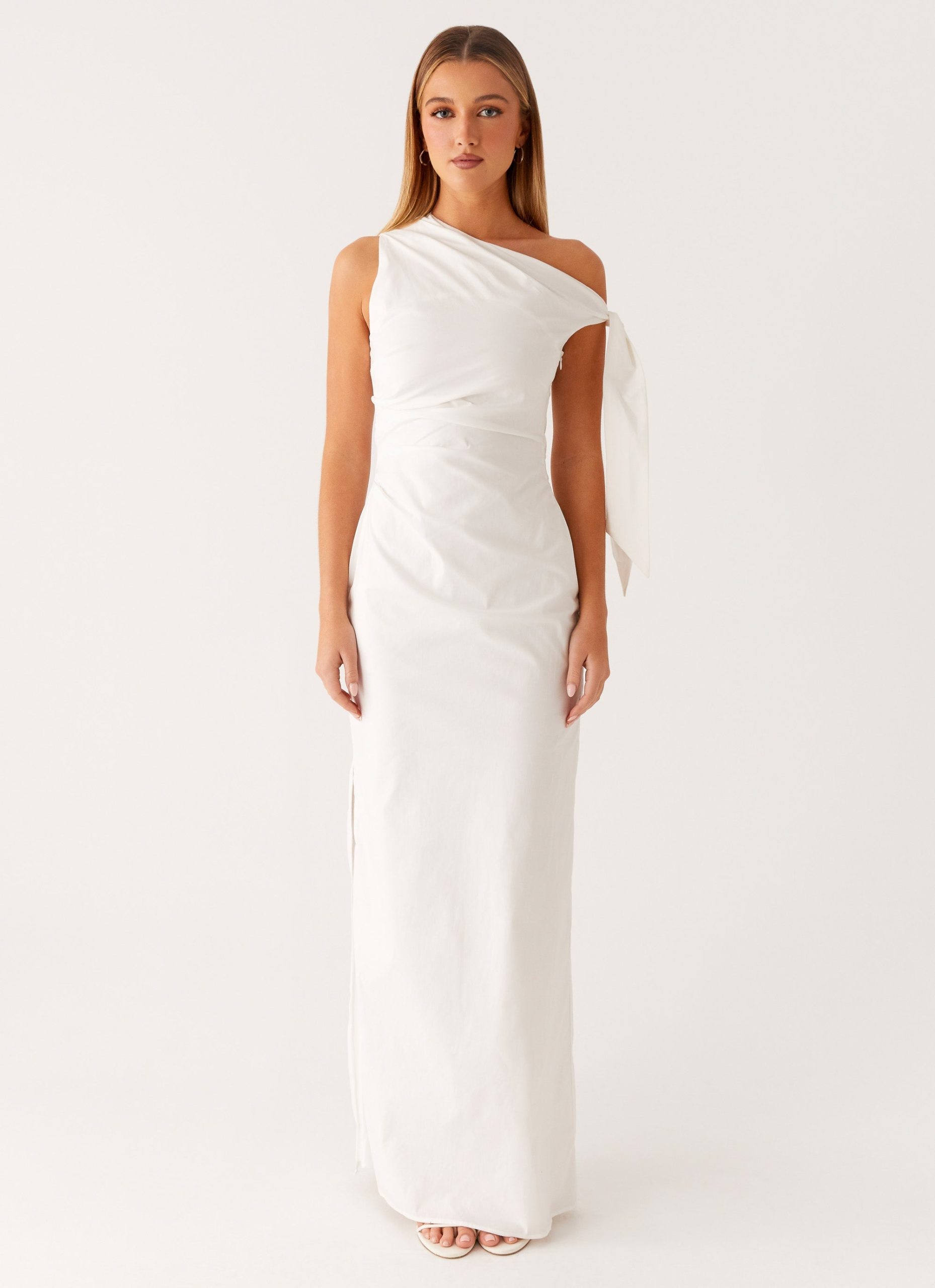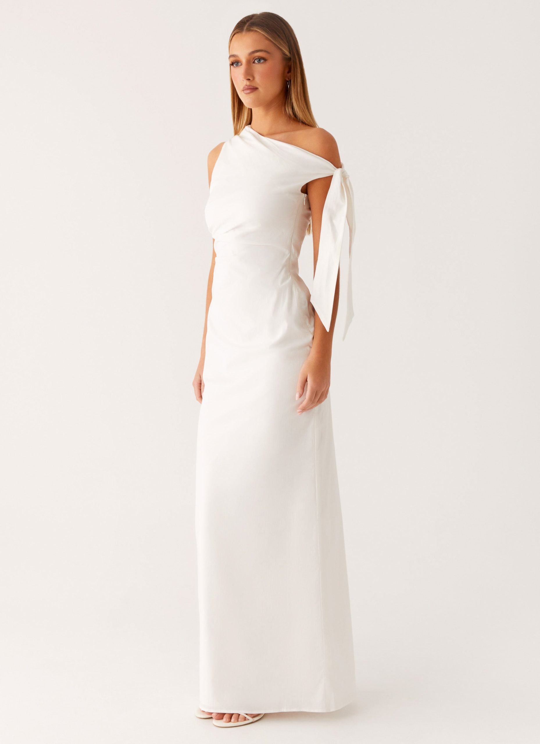 The Marella Maxi Dress is made for golden hour elegance and modern soirées that demand a sophisticated twist. Featuring a chic asymmetrical neckline and a unique side shoulder tie. this silhouette is crafted from a crisp. structured fabric that flows gracefully over the figure. With intricate ruched sides and a smooth. fully lined finish.