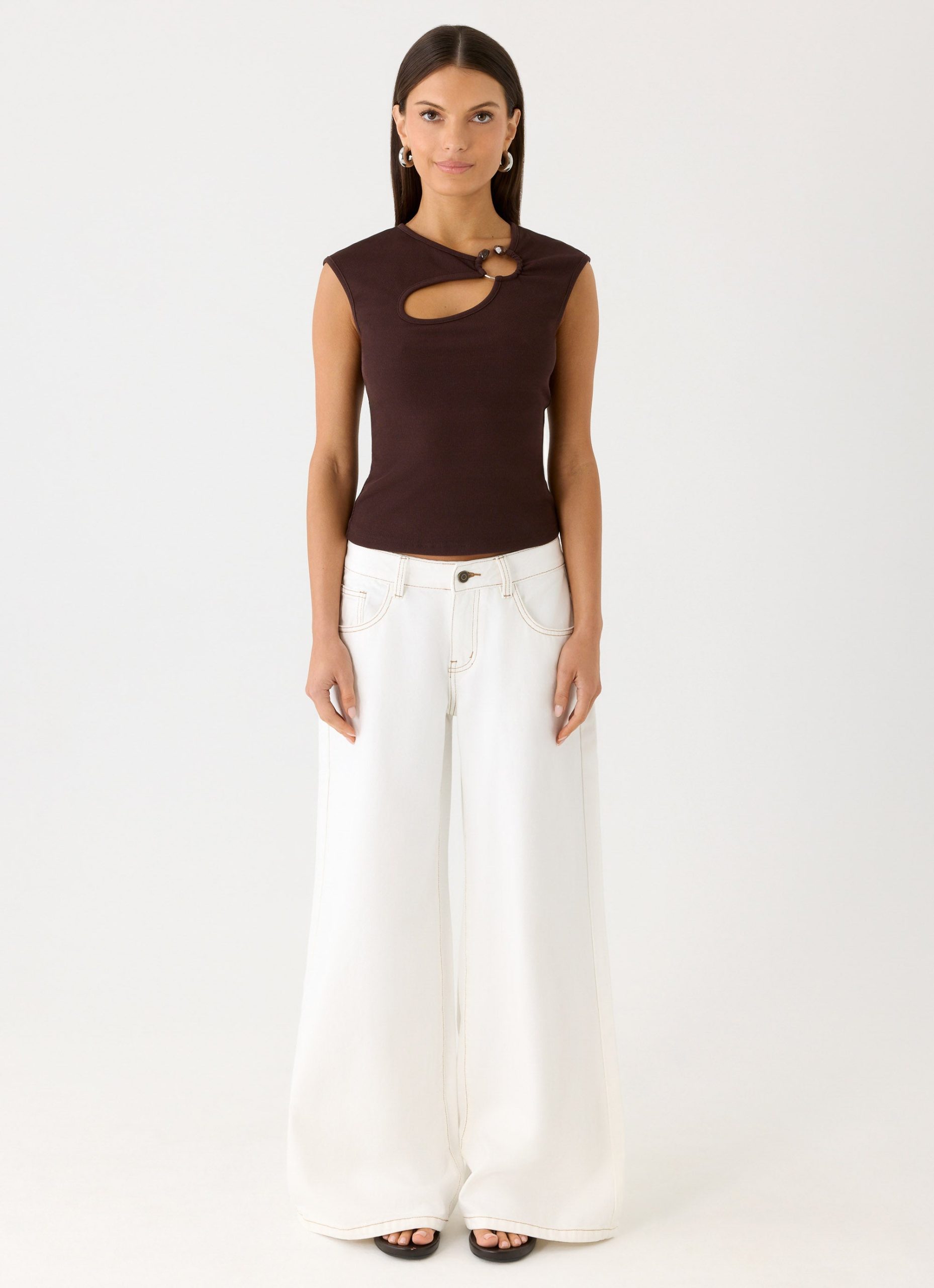 – Hardware keyhole neckline detail