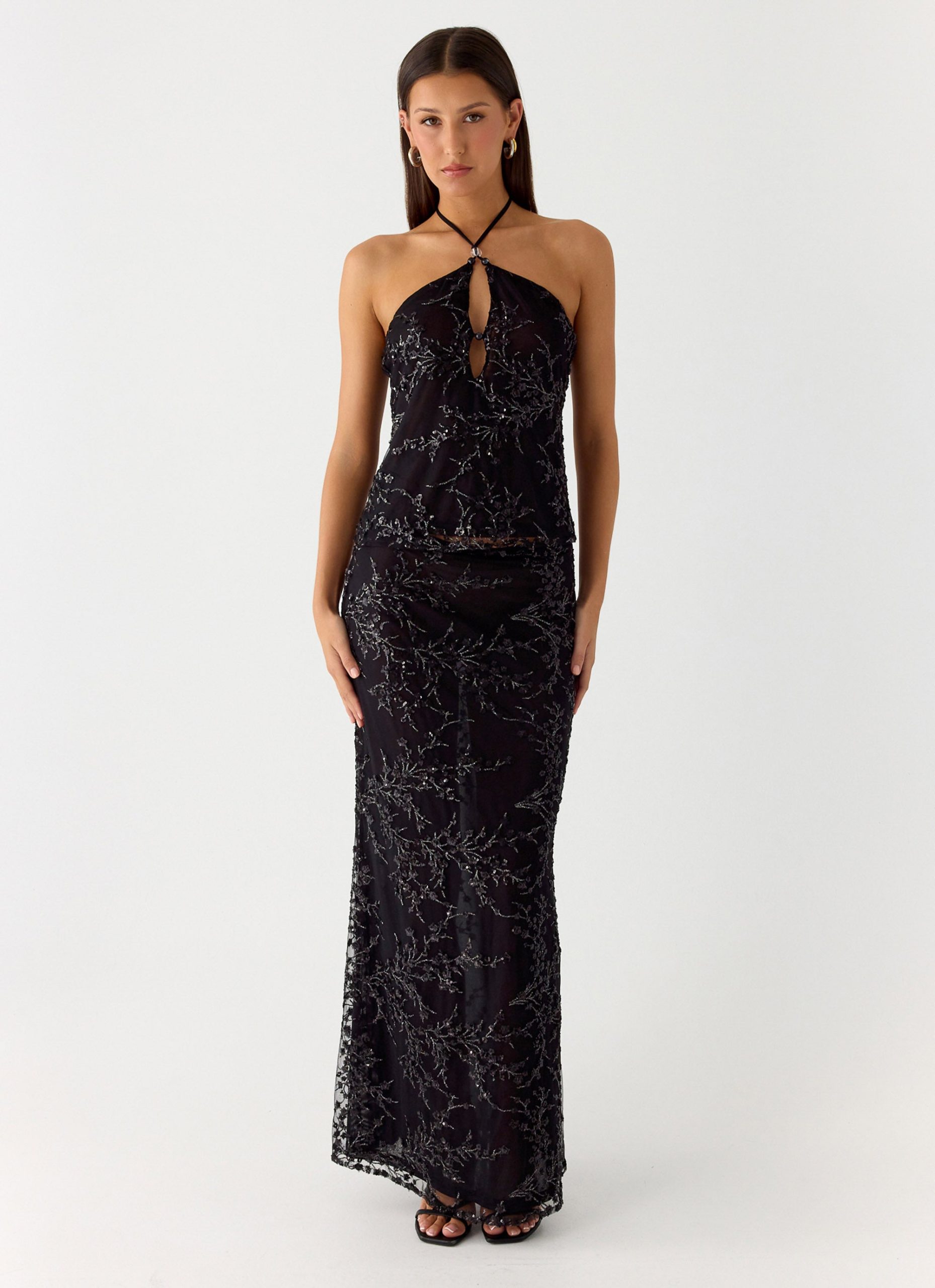 The Moodlight Maxi Skirt is made for golden hour evenings and after-dark glamour. Crafted in stretch sequin mesh. this fully lined maxi silhouette hugs the body for a flattering fit and shimmers with every step. making it perfect for statement styling.