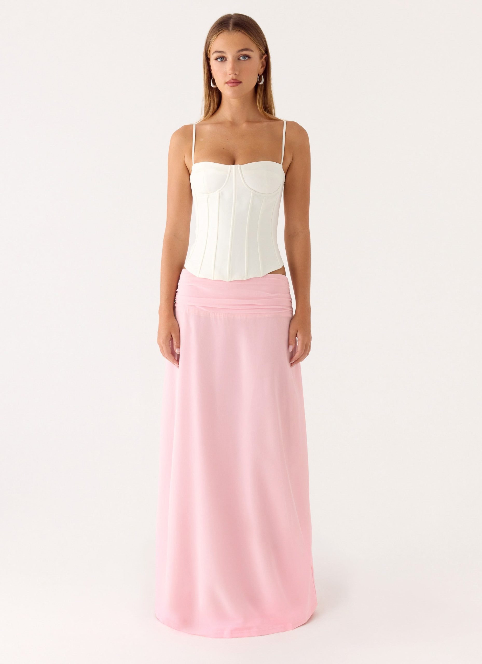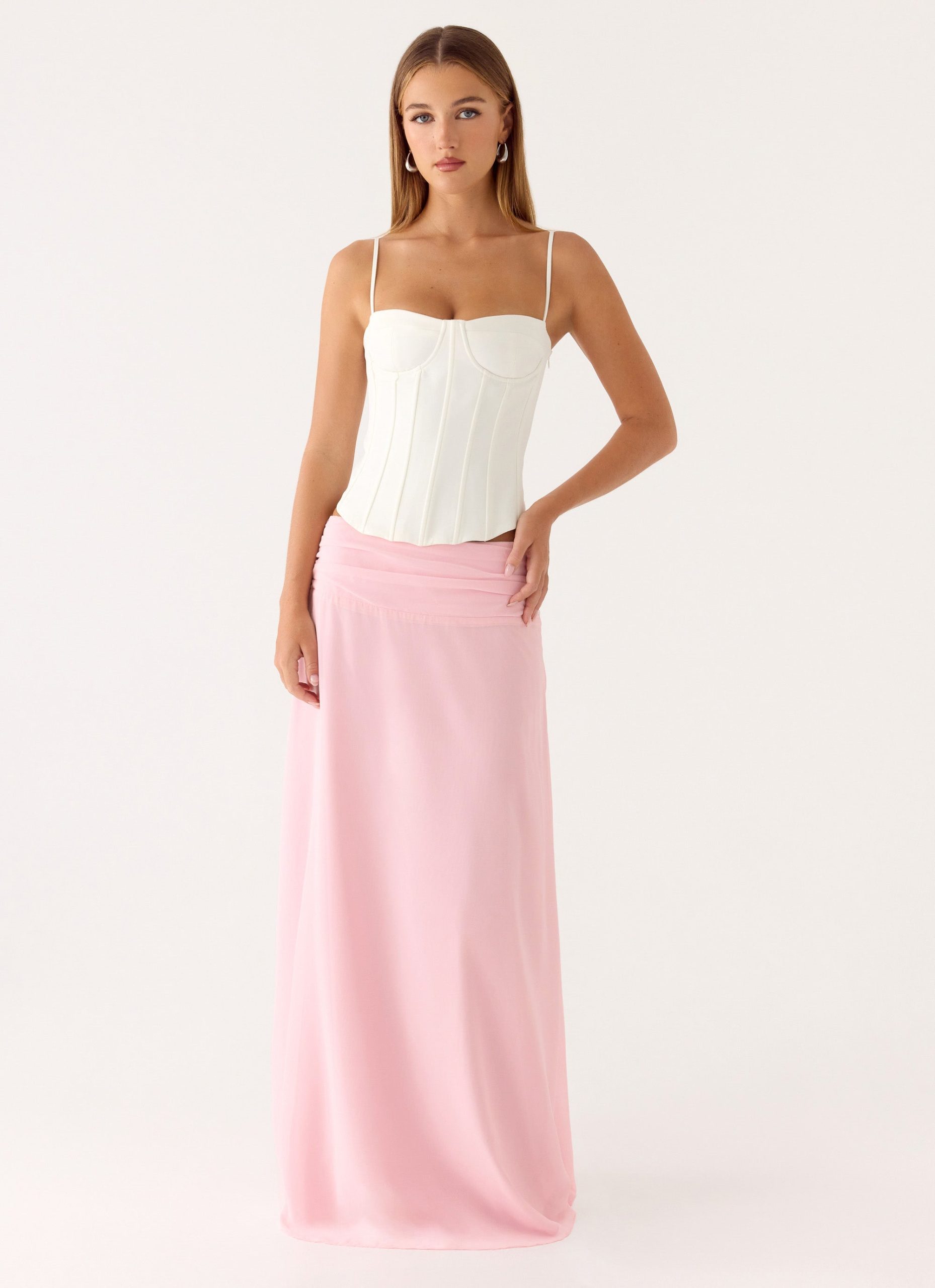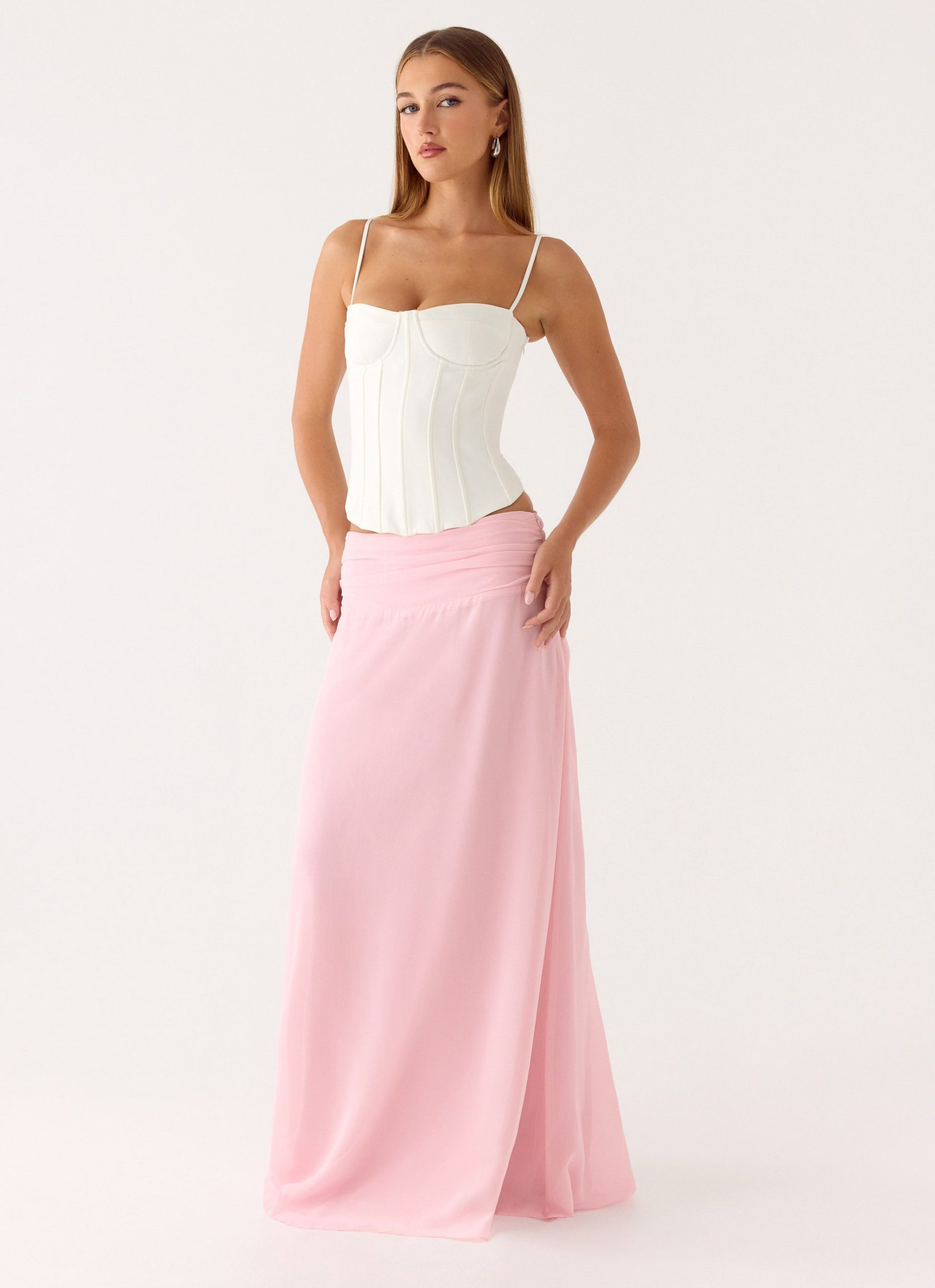The Natalya Maxi Skirt features a low-rise fit and waist ruching detailing. this flowing maxi silhouette feels effortless yet striking. Fully lined and finished with a side invisible zipper. it’s designed to move gracefully from beachside to bar-ready evenings.