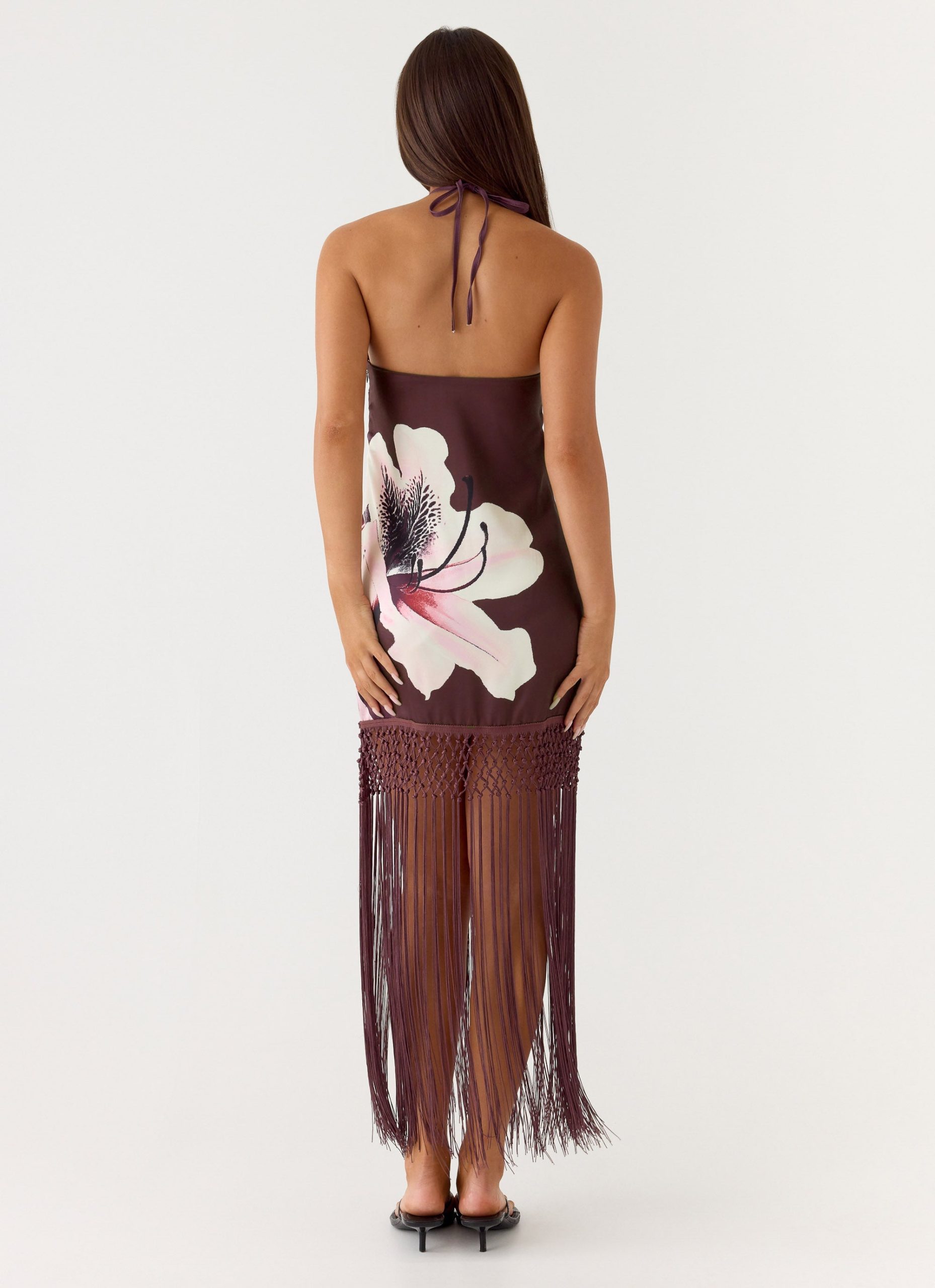 The Niahvette Halter Maxi Dress is made for endless sunsets and nights that stretch into golden hours. With a flowing maxi length and thin adjustable straps. it skims the body while tassels at the hem add playful movement. Fully lined and crafted in an exclusive print. it’s a statement piece that radiates confidence from sun-kissed afternoons to after-dark soirées.