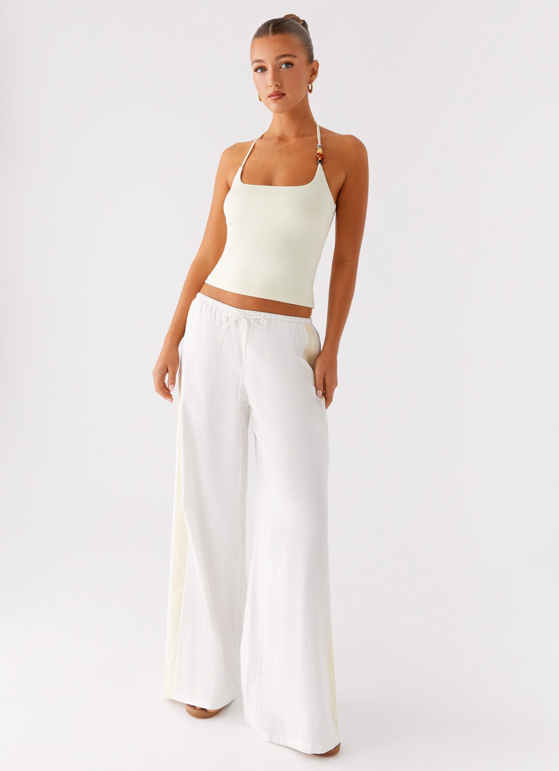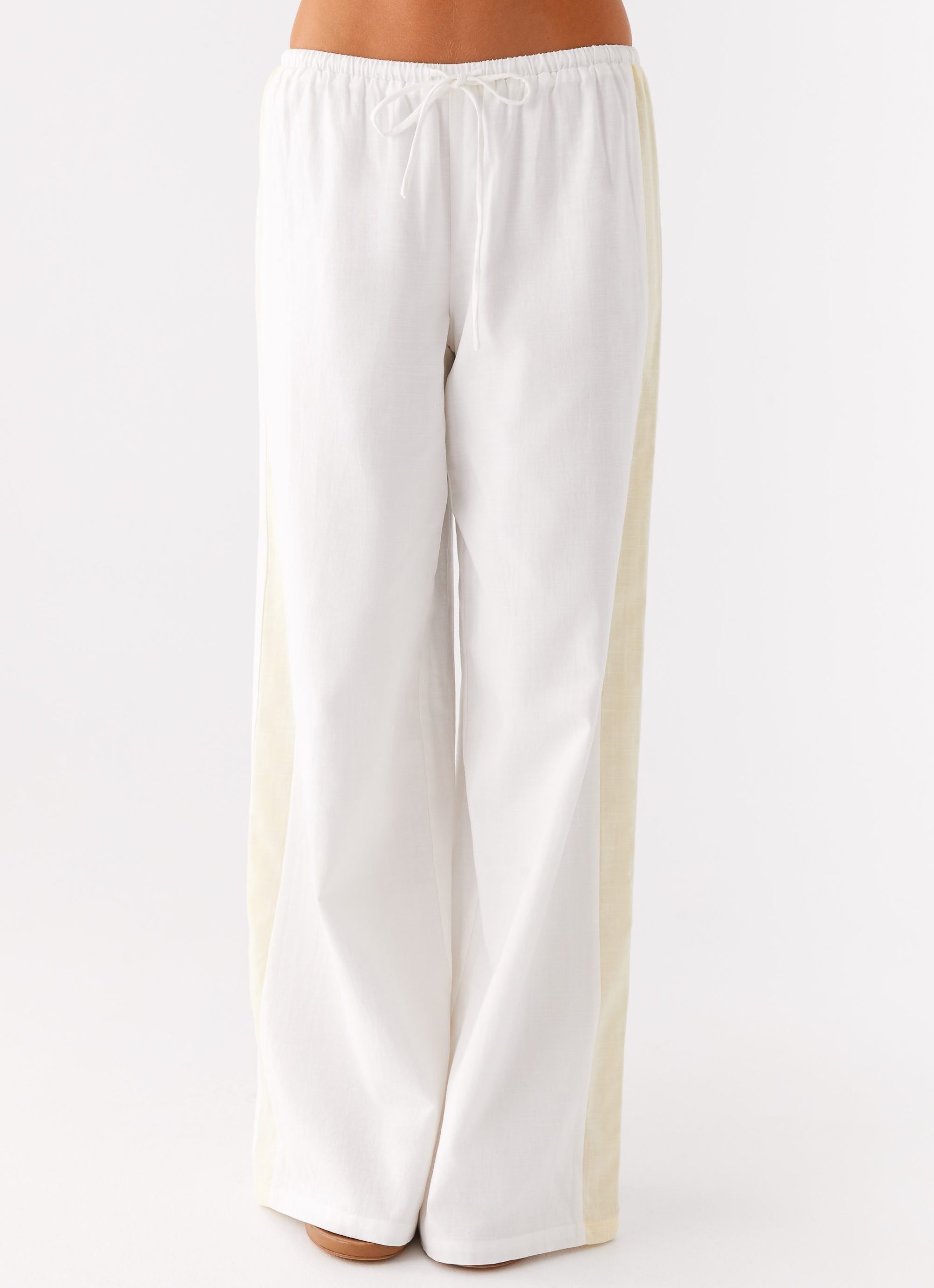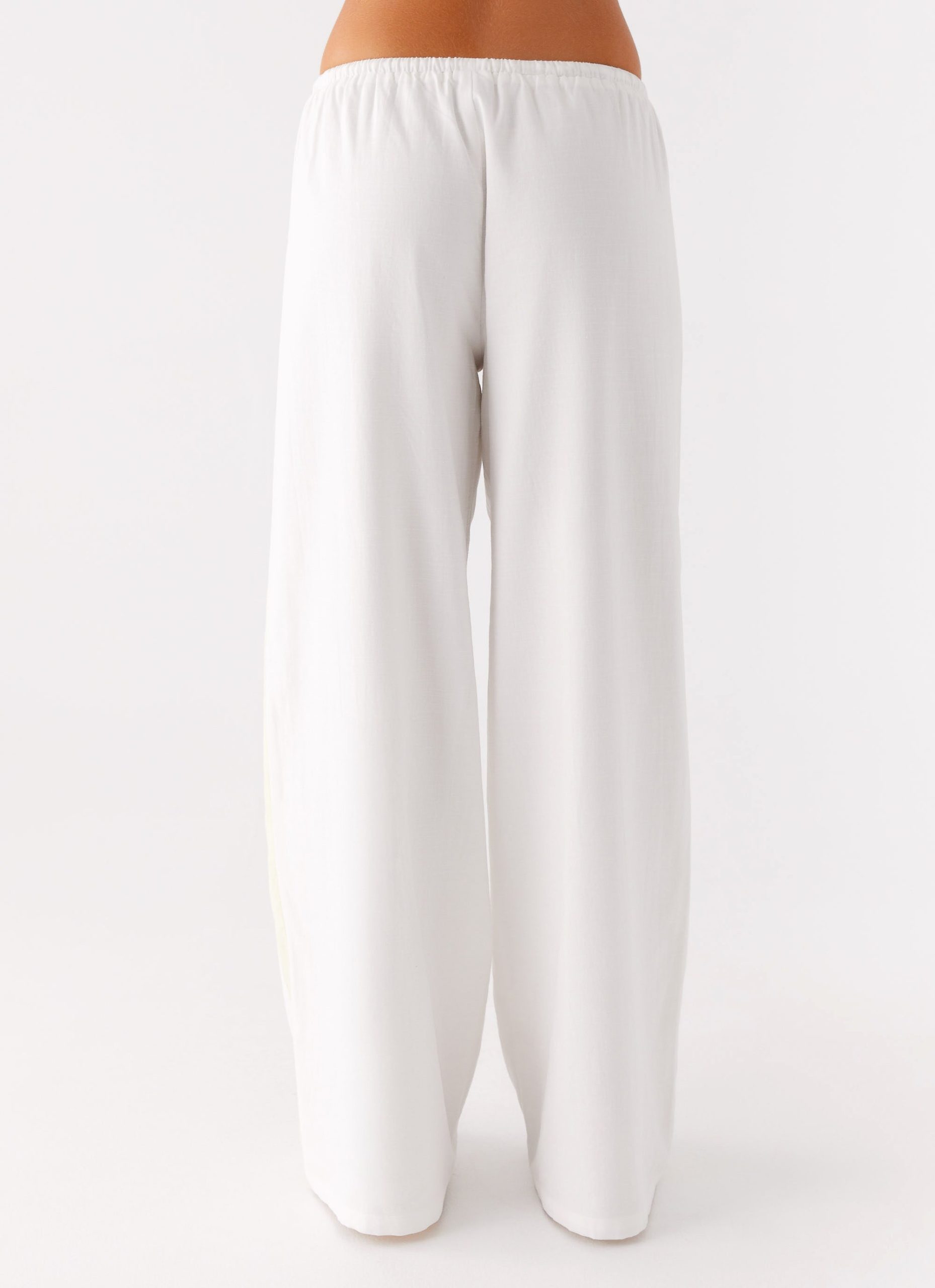 Relaxed and effortless. the Oska Pants feature a low-rise fit with a straight leg silhouette. Designed with a front tie. elasticated waistband. and contrast side panels. Crafted from semi-sheer fabric and unlined for an airy finish.
