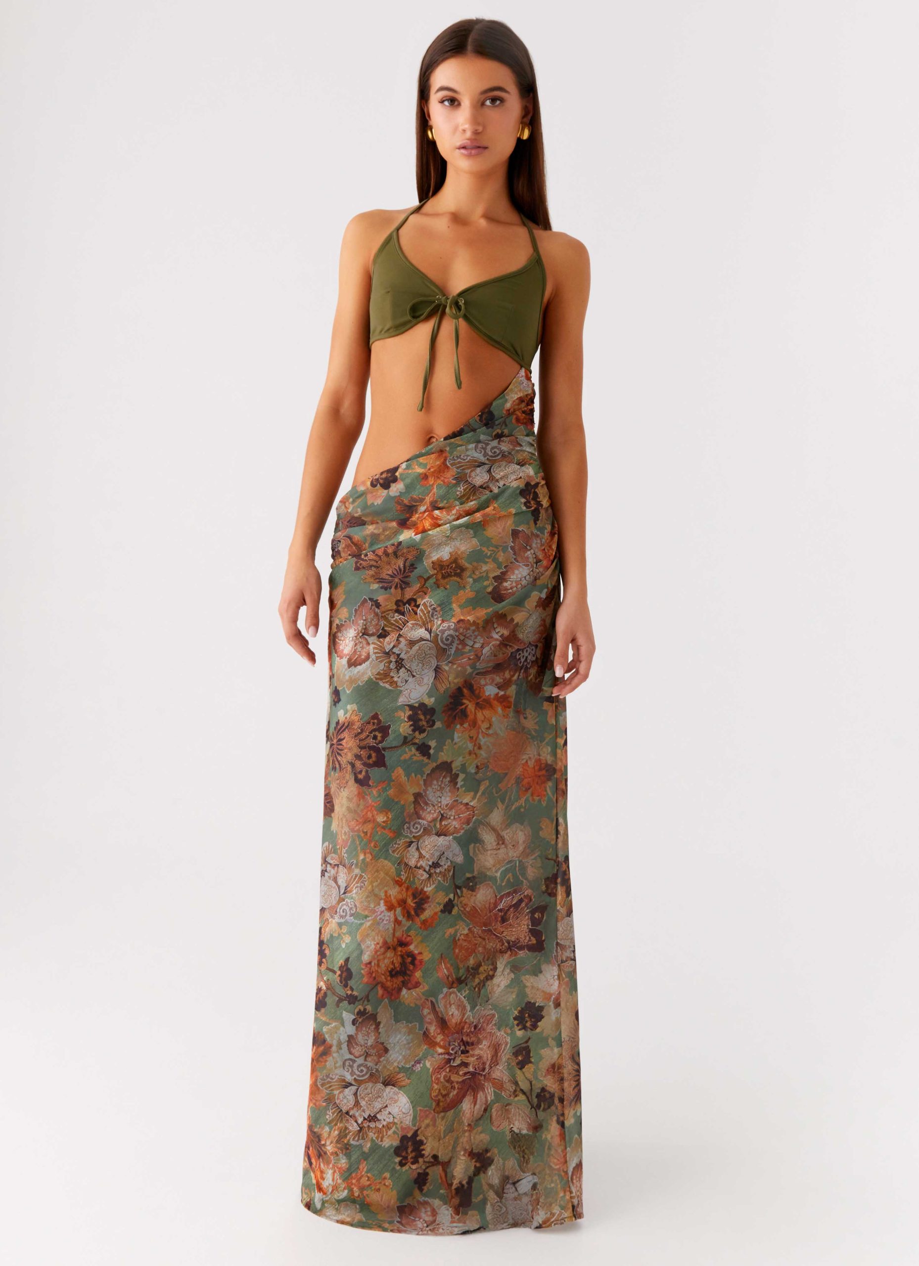 The Overgrown Maxi Dress brings effortless edge to your after-dark wardrobe. Featuring a tie-front bra with a halter neckline and thin adjustable straps. it flatters with a bodycon fit and asymmetrical cut-out details. Fully lined and finished with a maxi-length skirt and side invisible zip. it’s your statement piece for nights that never end.