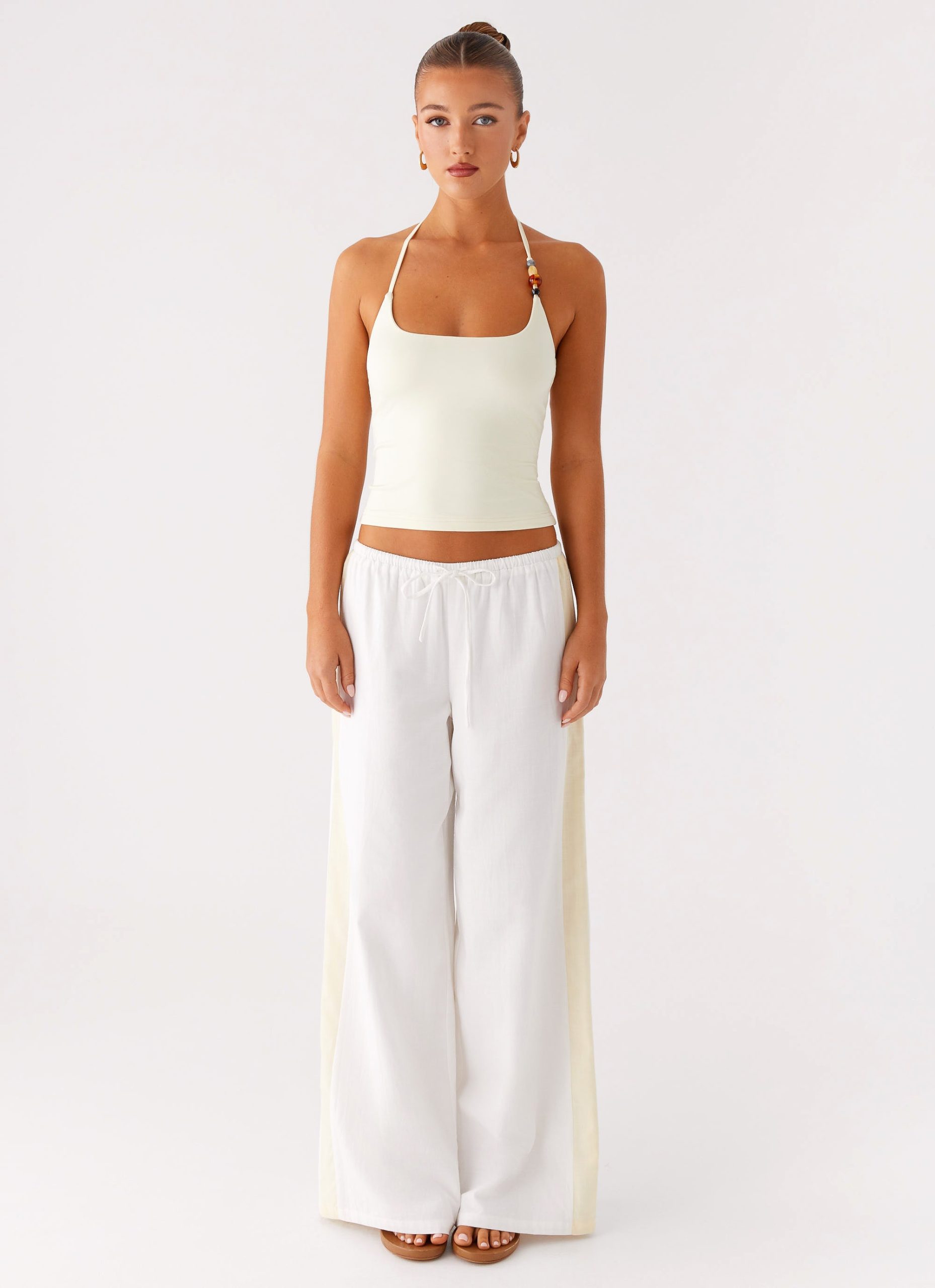 The Palm Beach Top is the perfect blend of effortless cool and subtle glam. Featuring a rounded neckline with delicate thin straps and a striking front beaded strap detail. this stretch jersey top offers a low back for a hint of evening allure. Designed to move with you from sunset vibes to late-night adventures.