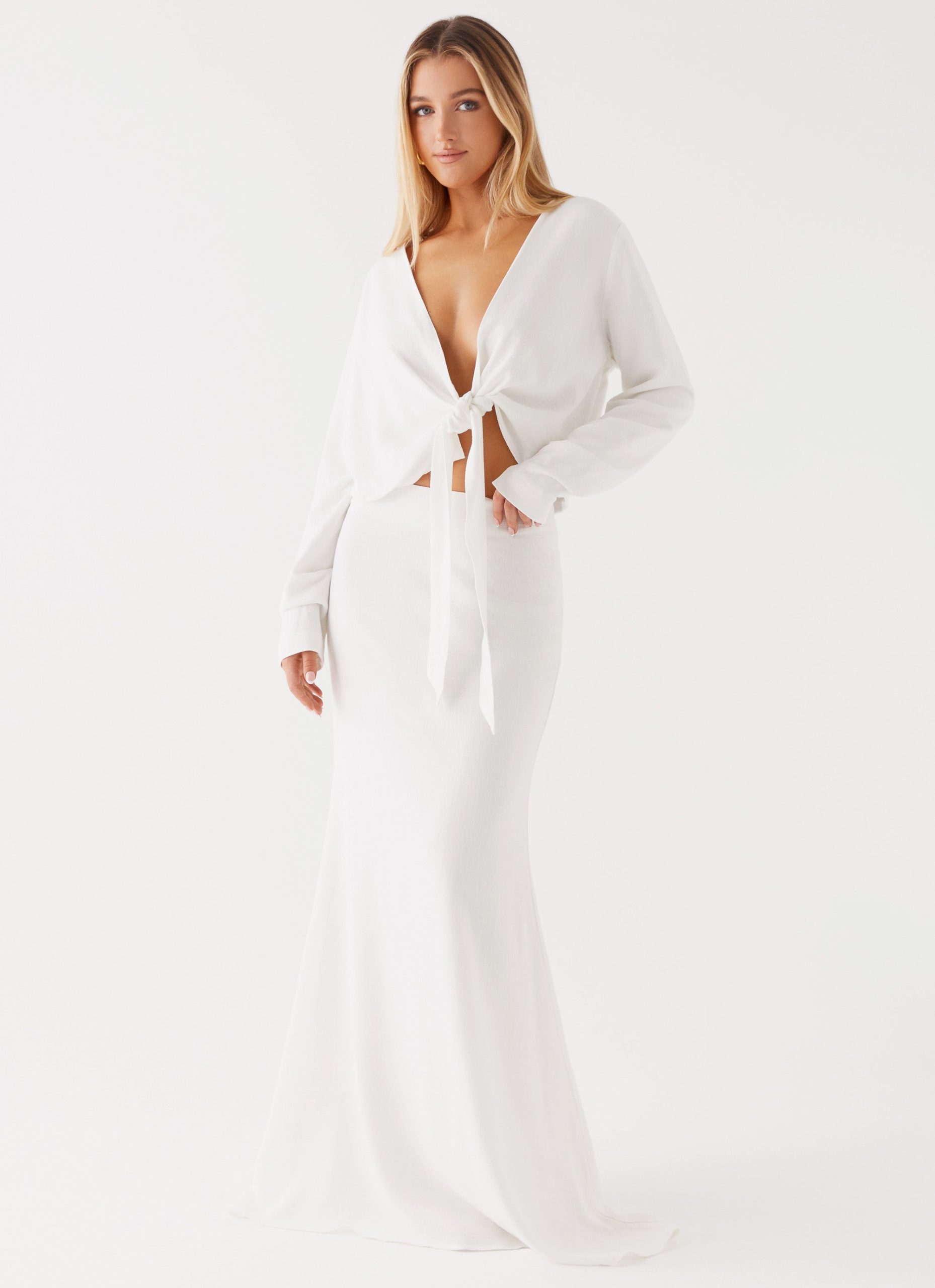 Parker Linen Knotted Top – White