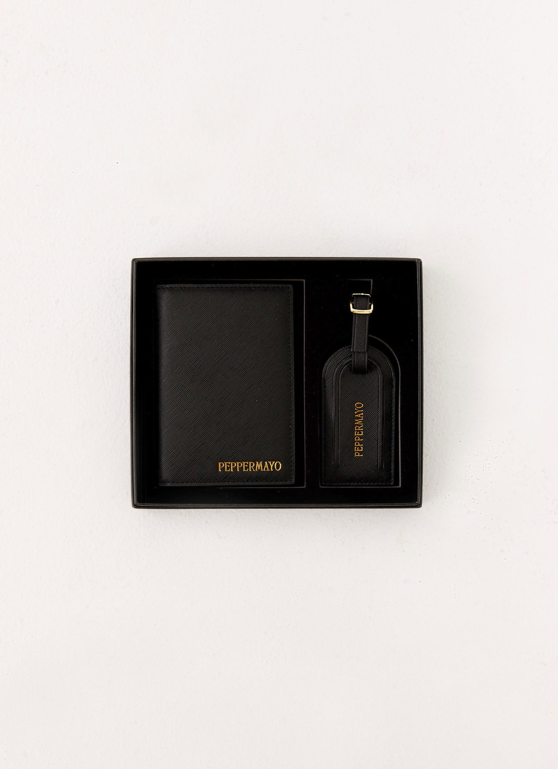 The Passport Holder & Luggage Tag set is where sophistication meets jet-set energy. Designed with sleek black and gold detailing. it’s the perfect travel companion for those who move with style. Elevate your essentials and take off in effortless luxury.