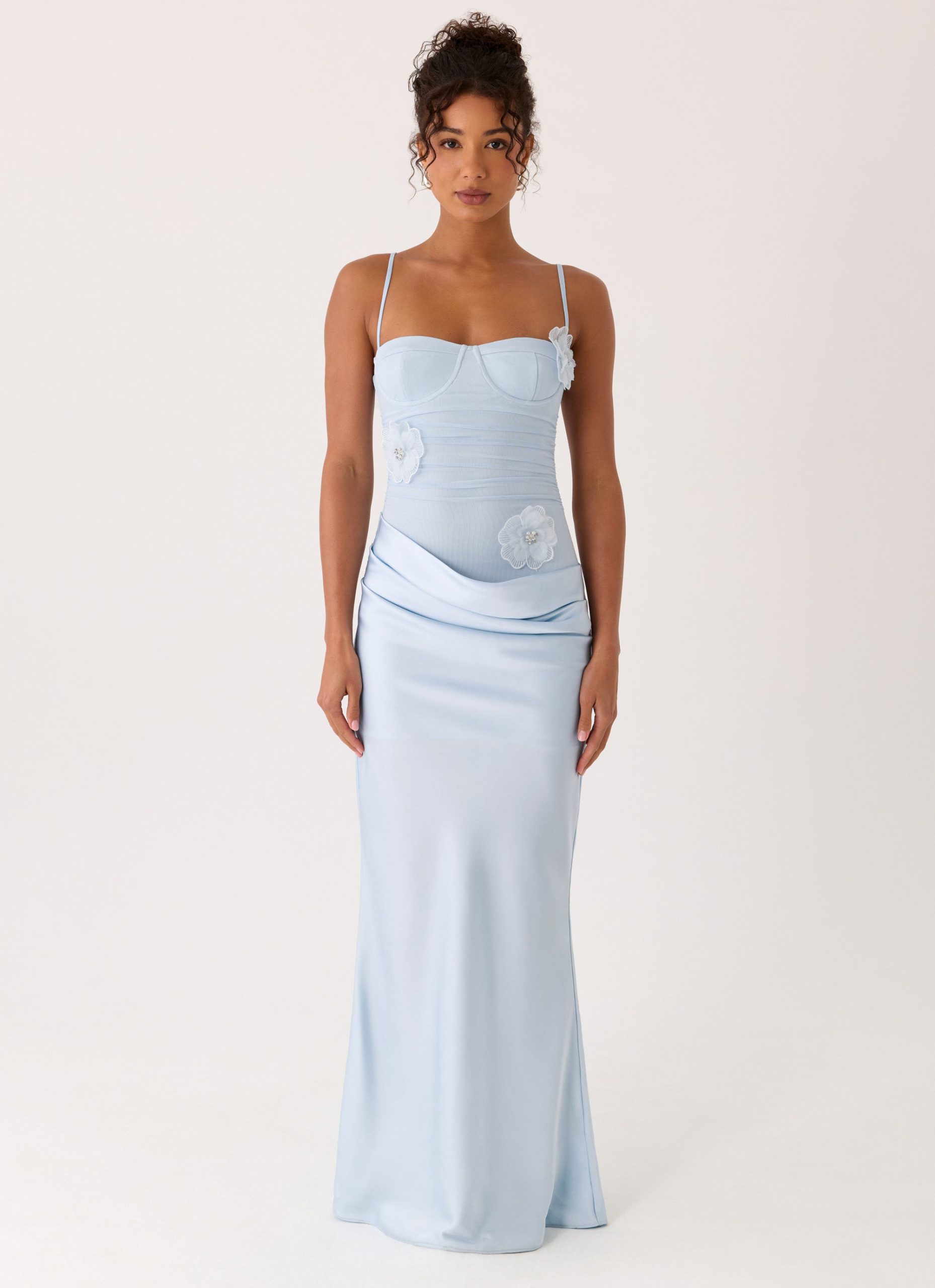 The Peasella Maxi Dress is made for sunlit afternoons that stretch into sultry evenings. With sculpted bust cups and a gathered waist. this silhouette flows into a draped bias-cut satin skirt that moves with effortless elegance. Feminine. flirty. and endlessly wearable. it captures the golden-hour glow in every step.