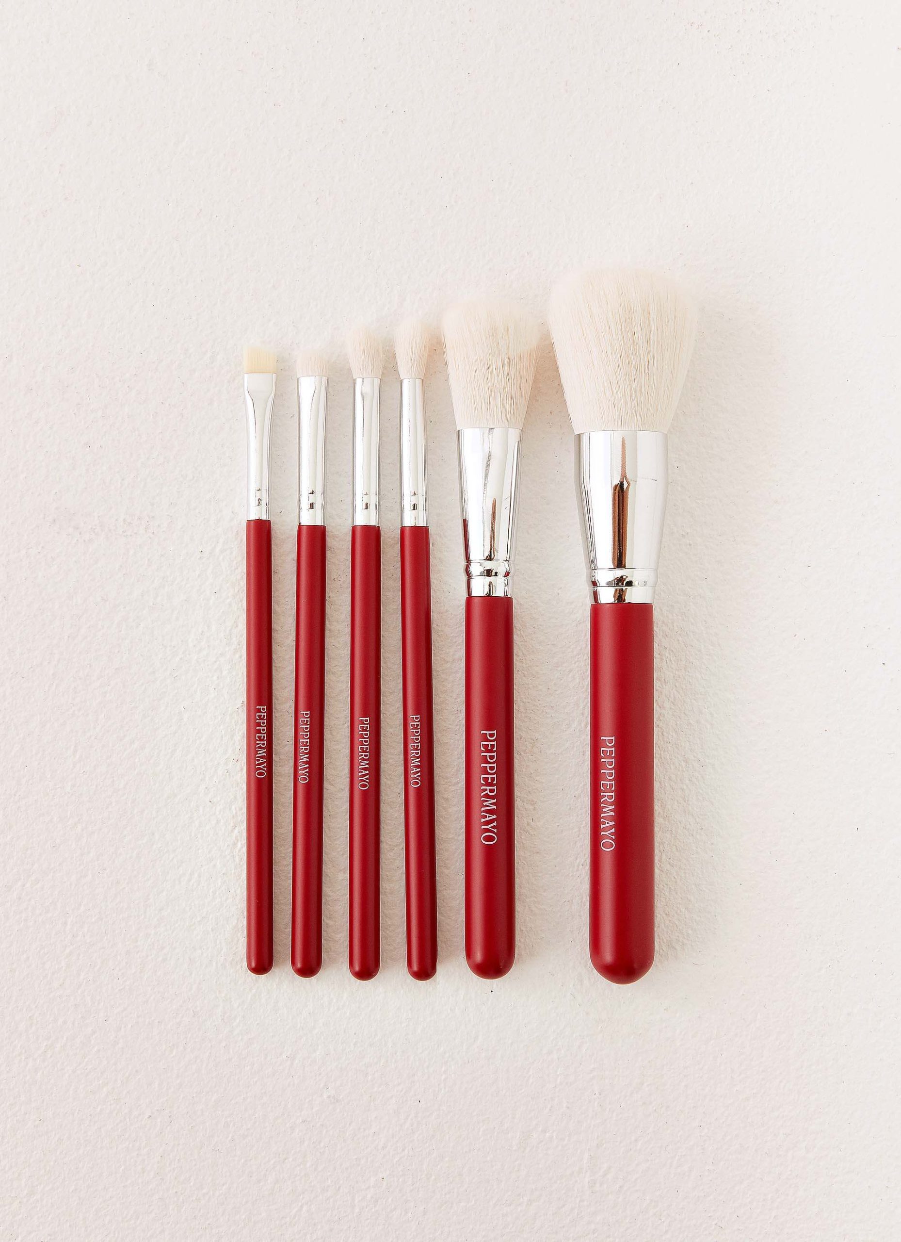 The Peppermayo Makeup Brushes set features six essential pieces for flawless makeup application. Each brush is designed for precision and smooth blending. Perfect for both everyday and glam looks.