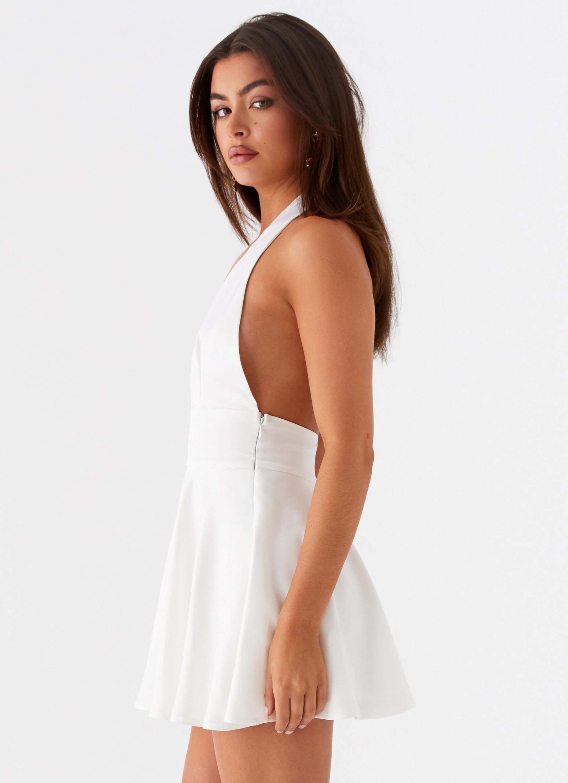 Step into the night with the Peppermint Mini Dress. Featuring a playful V neckline. a charming sash tie at the neck. and a daring open back. it’s designed for those who savor moonlit moments and the vibrant pulse of the evening.