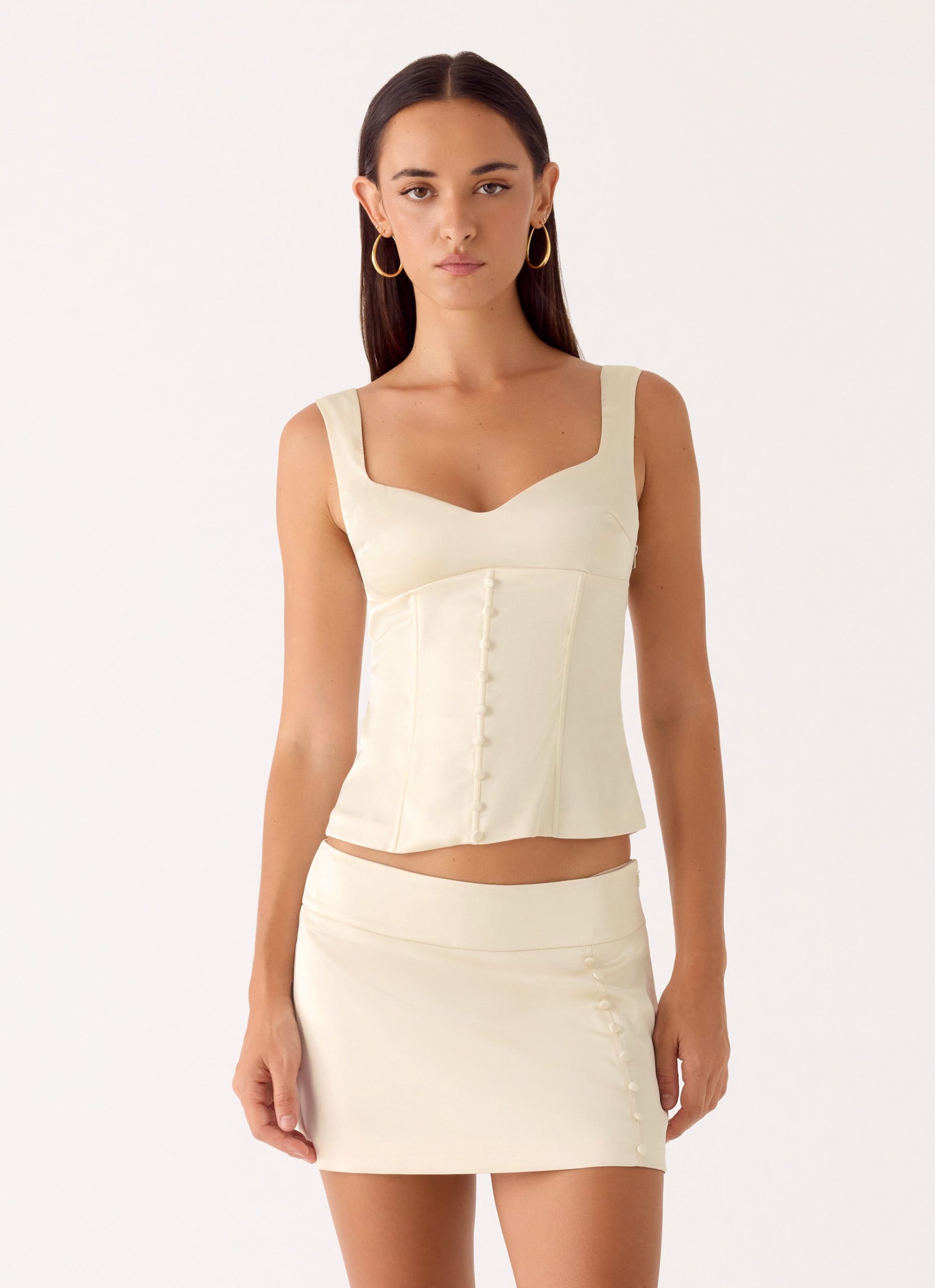 The Posy Mini Skirt is made for golden hour moments that spill into nightfall. Cut in a flattering mid-rise fit with a mini length. it features self-covered buttons and a side zipper for a polished. editorial satin finish. Fully lined. this skirt moves effortlessly while keeping a refined. after-dark appeal.