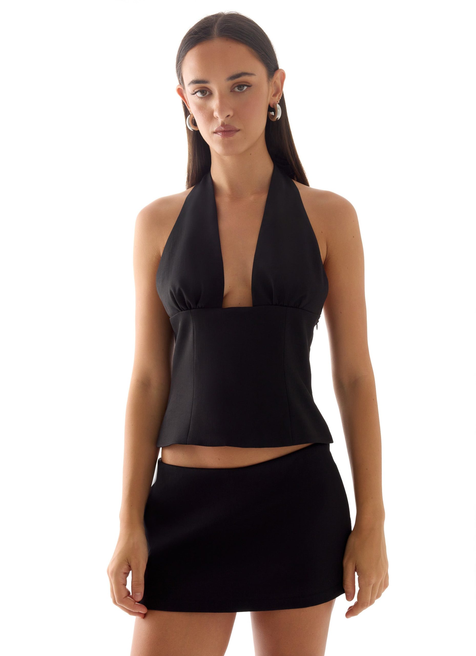 The Rushing Around Halter Top is designed for sleek. elevated styling with a modern. structured silhouette. Featuring a halter neckline. this tailored top skims the body for a polished. confident look. Lightweight and refined. it’s a versatile piece for day-to-night dressing.