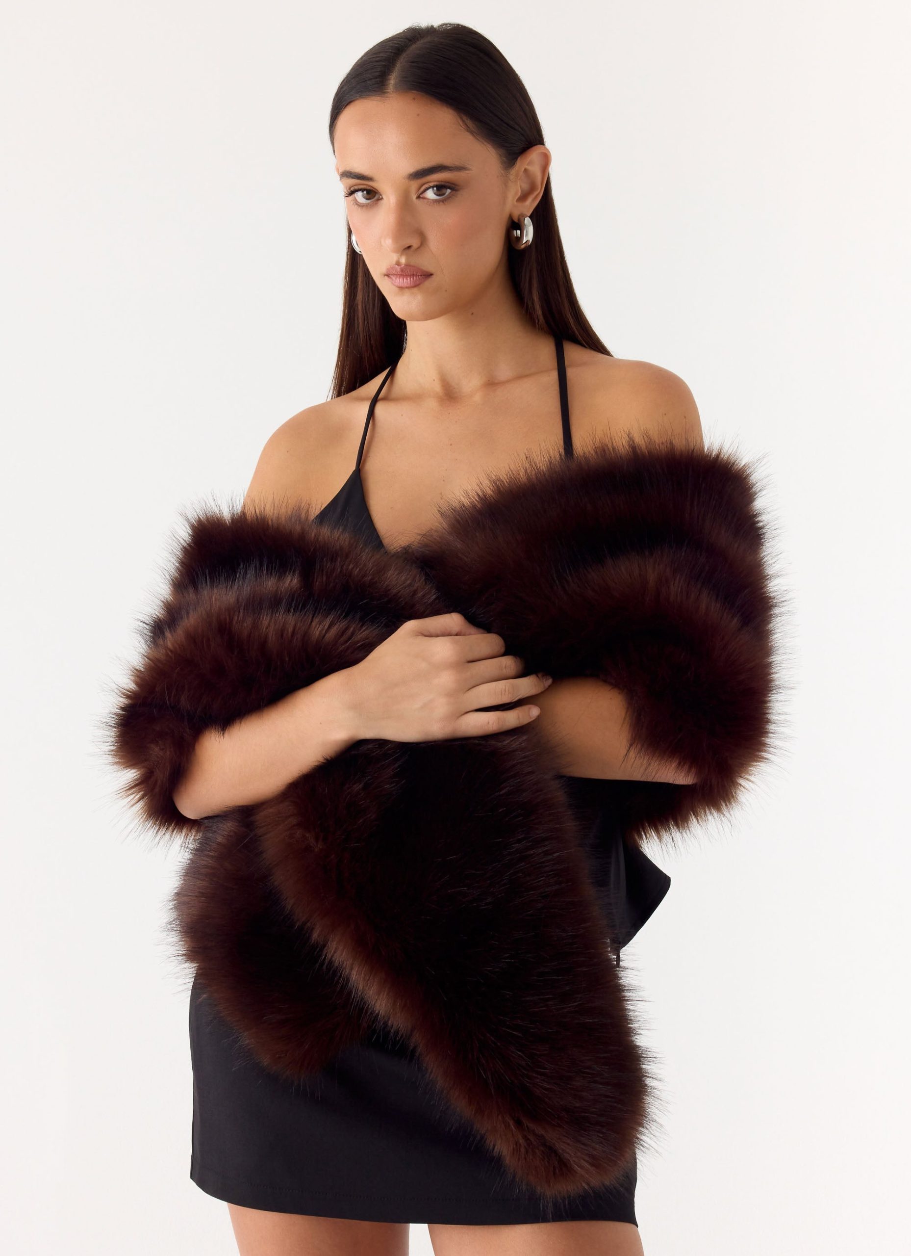 Saskia Faux Fur Scarf – Chocolate
