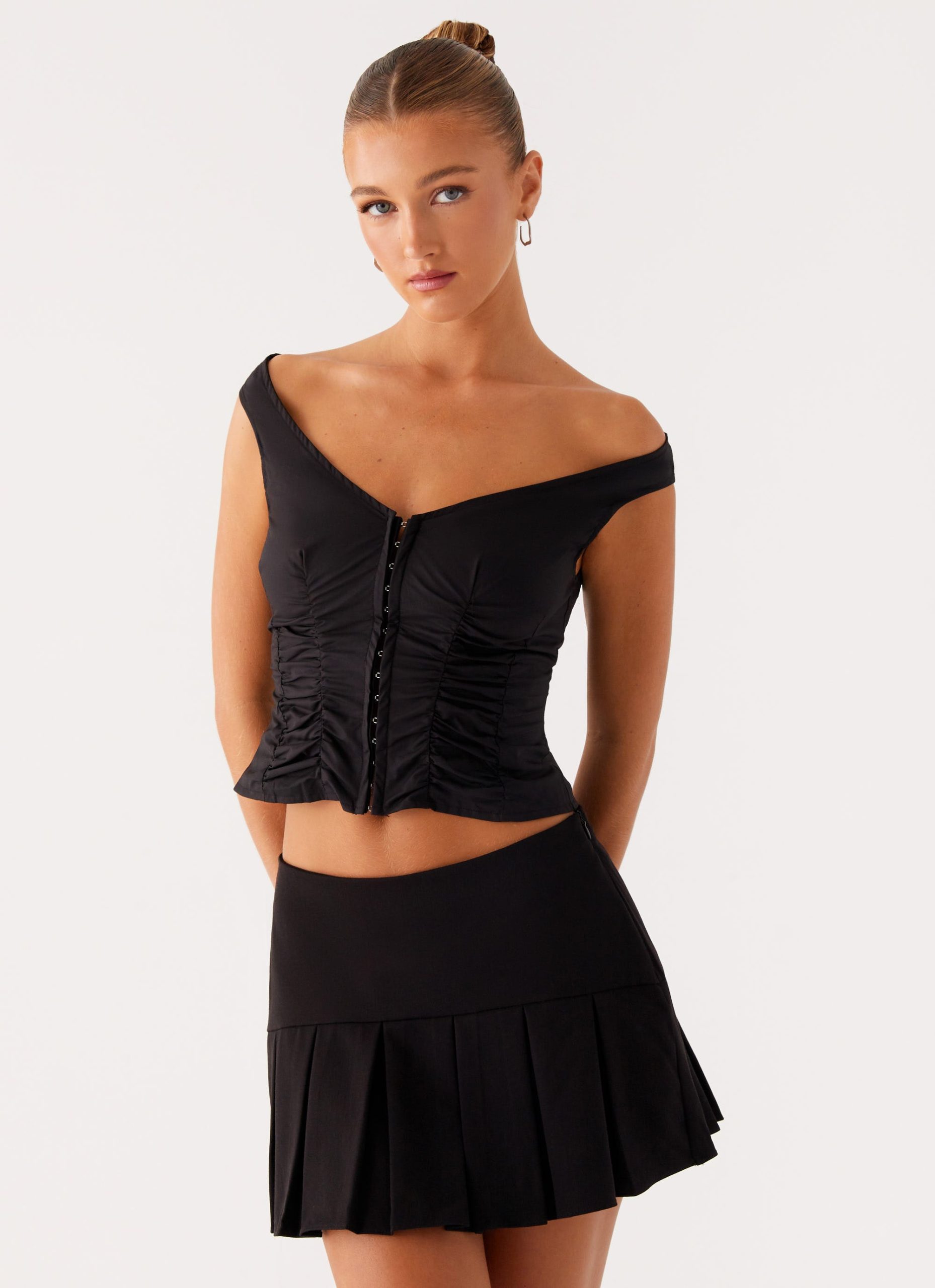 The Shelby Pleated Mini Skirt is the ultimate in playful sophistication. Featuring a low waist and fully lined for a smooth. flattering fit. its pleats add movement and charm.