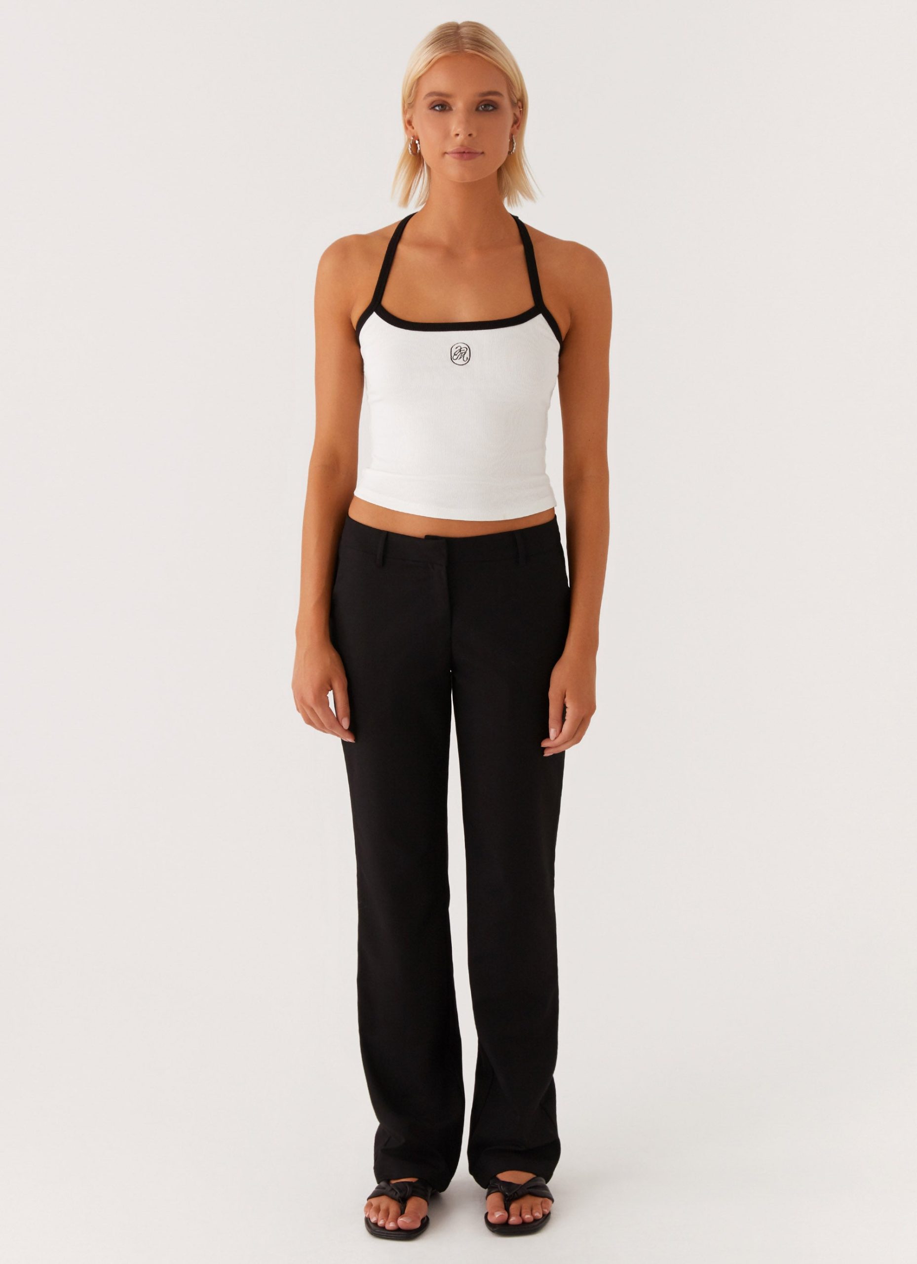 The Signature Monogram halter top redefines effortless elegance. With a rounded neckline and stretch knit fabric. it hugs your figure and moves with your every step. Unlined for a lightweight. breezy feel. this top is perfect for turning heads under the glow of the night.