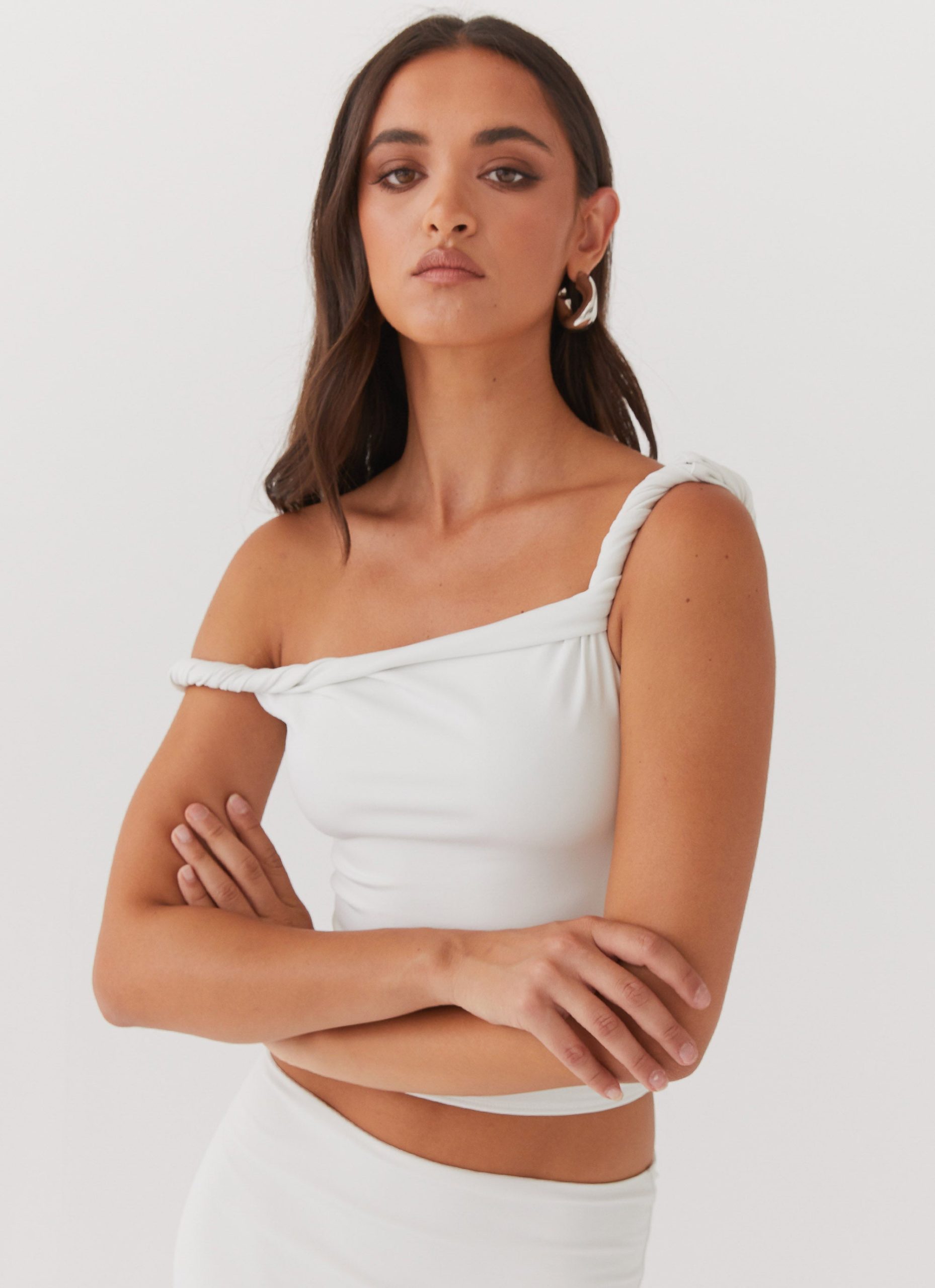 Sleek. sexy and stylish. it’s the new heavenly sent Solace Soul Twist Shoulder Top. This babe features off the shoulder design with a twist detail. Style her with the matching skirt. nude stiletto heels and gold hoops for a stunning cocktail look.