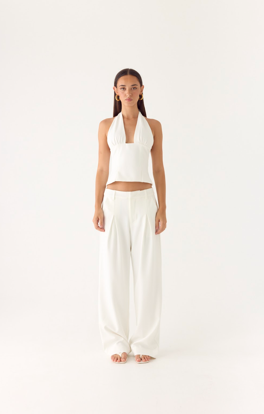 The Sora Low Rise Pant is made for effortless sophistication from desk to dusk. Featuring a low-rise waistline and relaxed straight leg fit. these pants drape beautifully while the suiting fabric and front hook-and-zipper closure offer a polished finish. Belt loops add versatility. making this tailored silhouette both chic and comfortable.