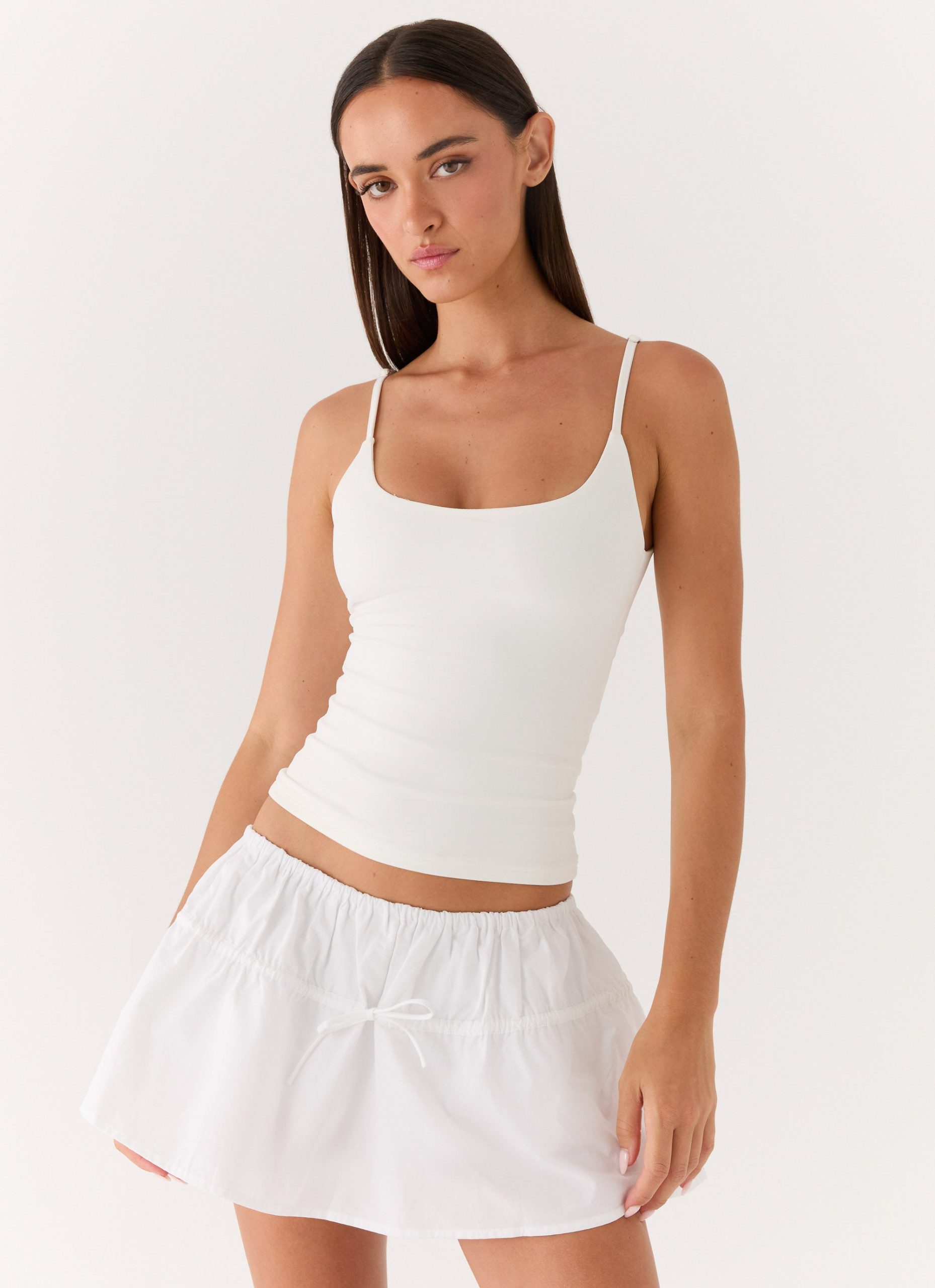 The Sugar Talking Mini Skort features a modern low – rise fit. a playful balloon skirt silhouette. and an effortless elasticated waistband. Designed with functional internal shorts for comfort and coverage. this piece offers a voluminous shape that moves beautifully.