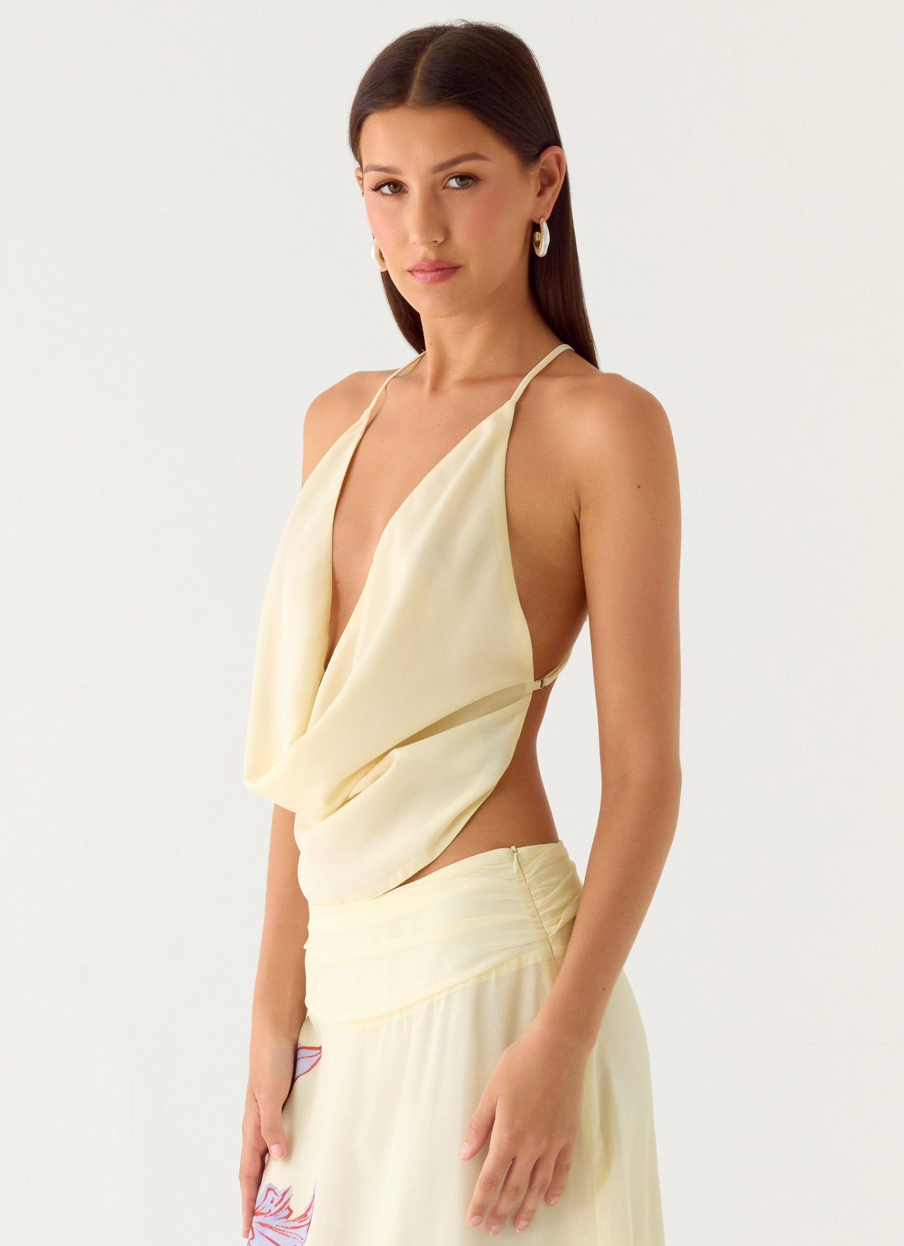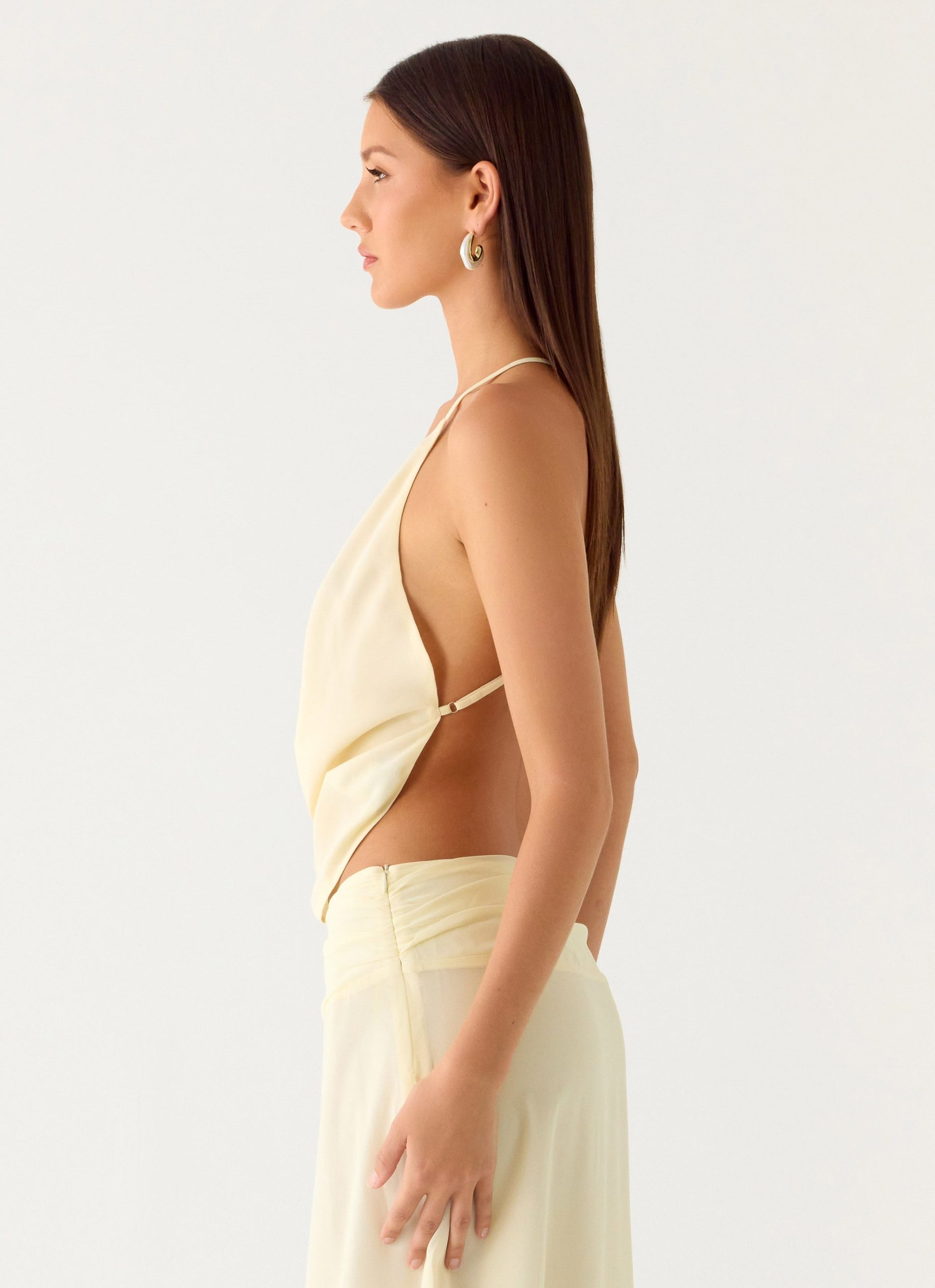 The Sweet Charm Cowl Neck Top is a chic and versatile piece featuring a low front cowl and a back criss-cross with thin adjustable straps. perfect for layering or wearing solo for a sleek look.