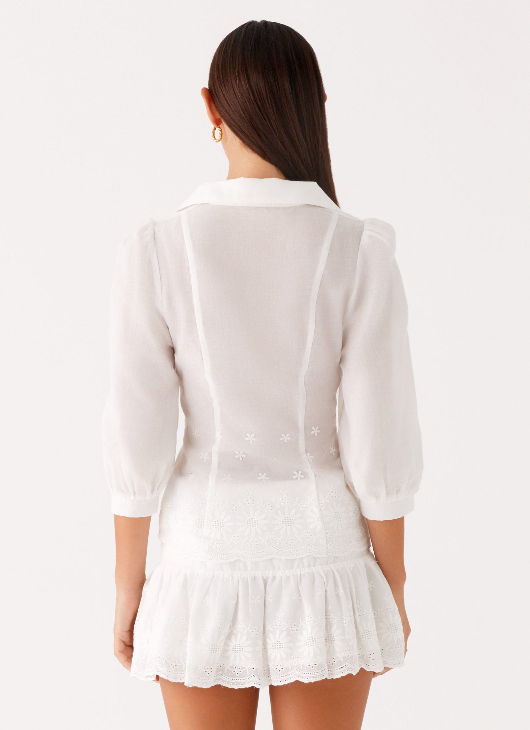 The Sync Love Broderie Mini Skirt brings playful texture and a flattering low-rise fit. Its flared silhouette adds movement. while the intricate broderie detail elevates its design. The perfect mix of fun and finesse for your next night out.