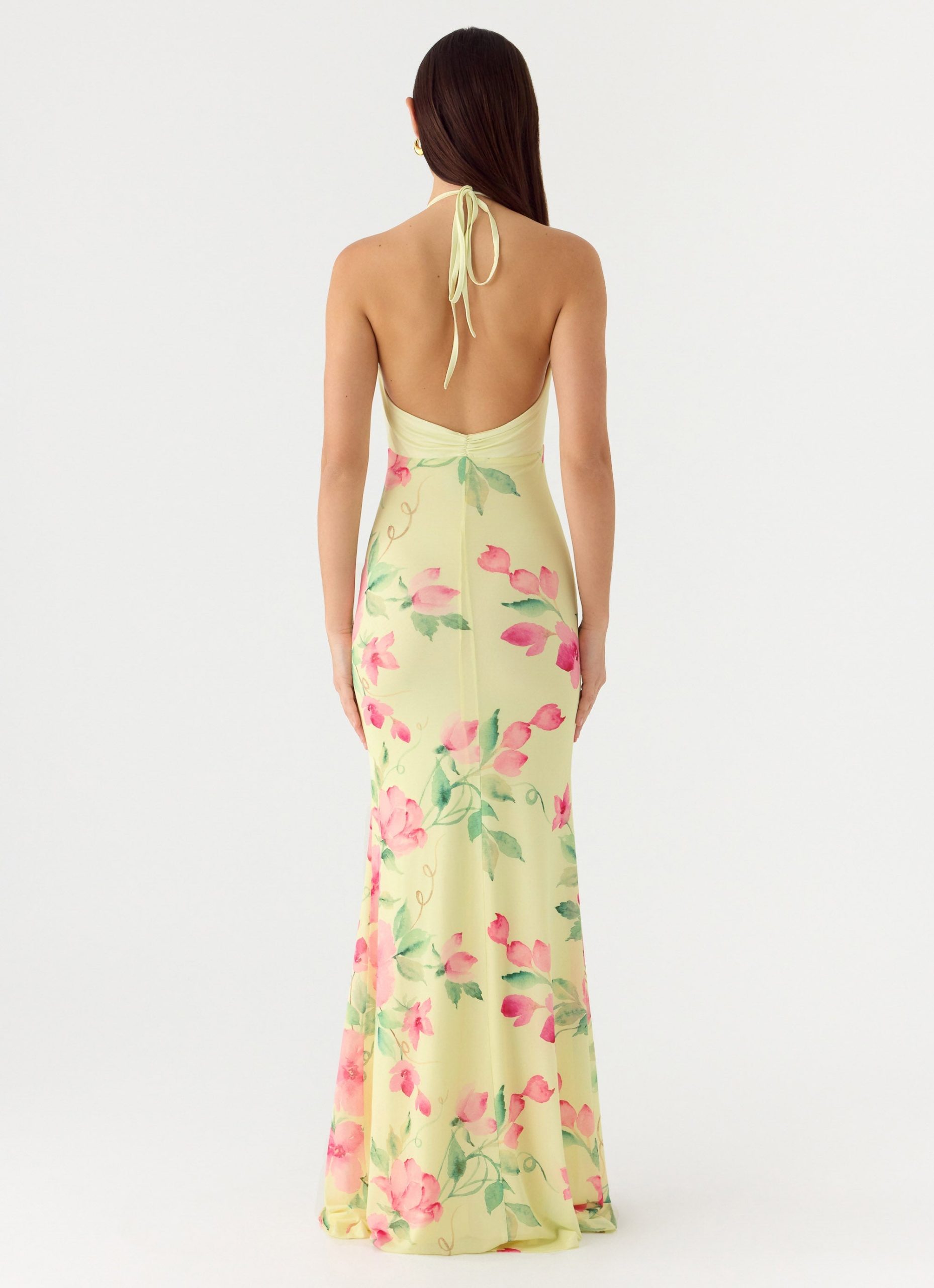 The Takedown Halter Maxi Dress is made for nights that shimmer under the last light of day. Flowing into a maxi length with a low V neckline. this silhouette features delicate lace detailing and thin adjustable straps for a perfectly tailored fit. Fully lined for comfort and ease. it’s designed to move effortlessly from sunset to after-dark allure.