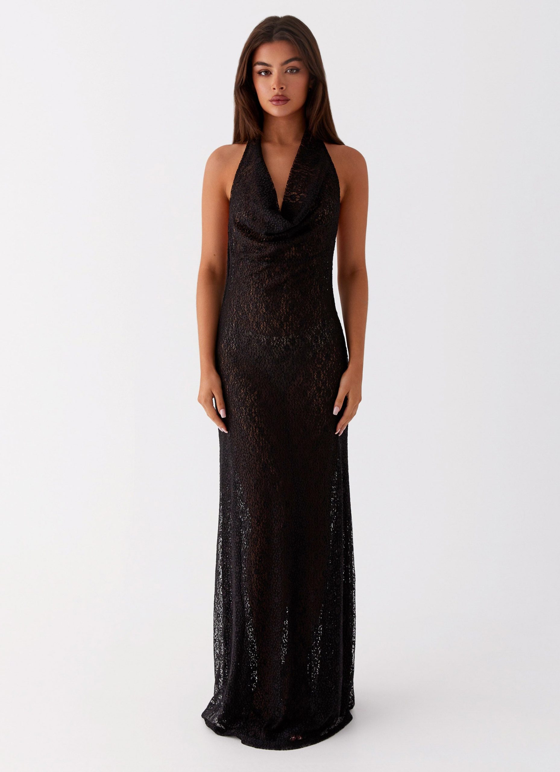 The Tempest Cowl Neck Maxi Dress is your go-to for sultry summer nights. This maxi dress features a halterneck with button closure. semi-sheer fabric. and an open back. making it perfect for golden skies and balmy nights.