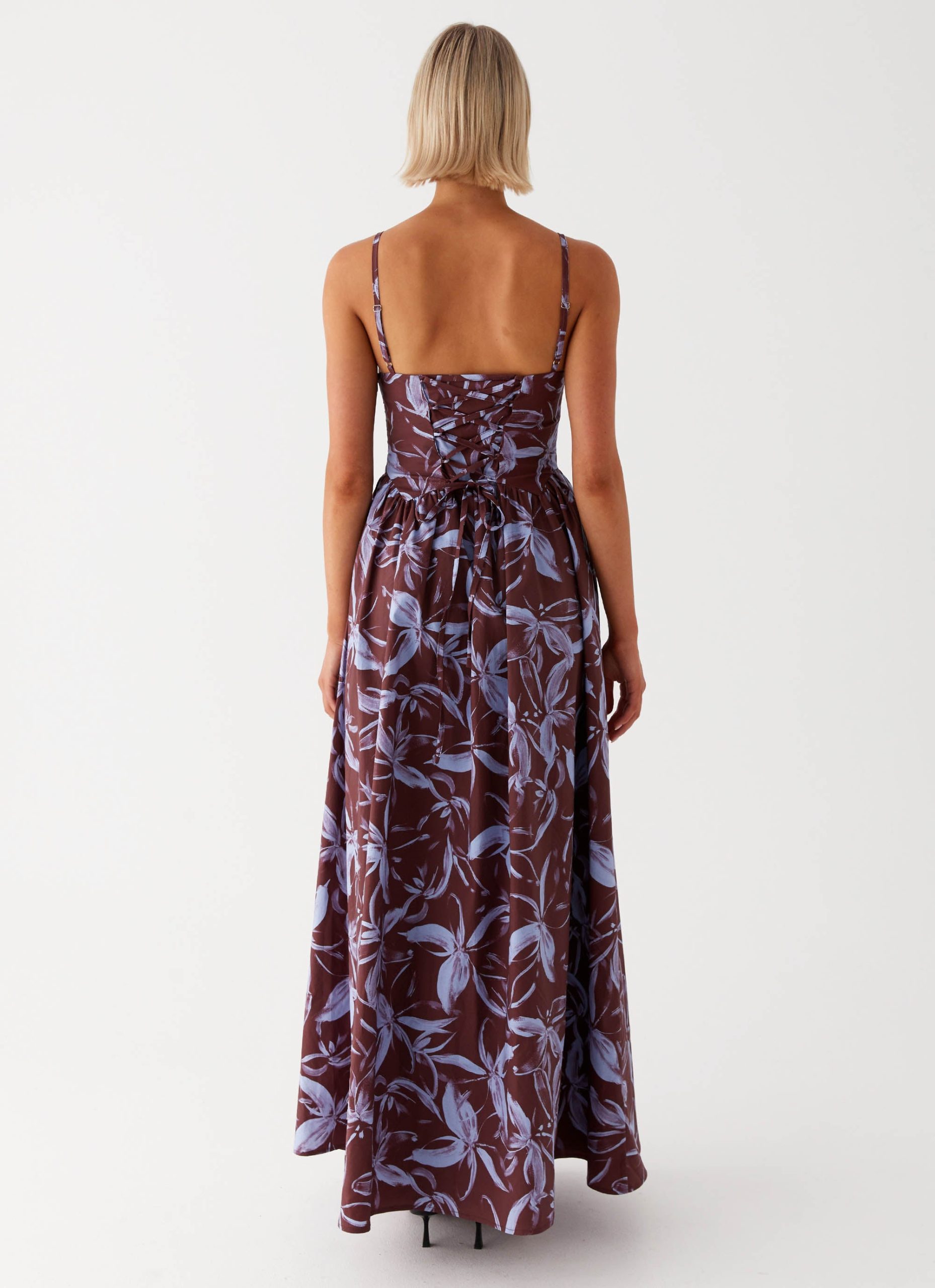 Introducing the Tesoro Maxi Dress. With its rounded neckline and elegant back corset tie. this dress effortlessly blends sophistication with a touch of allure. Its flowy silhouette ensures a graceful and comfortable fit. perfect for making a statement at any event.