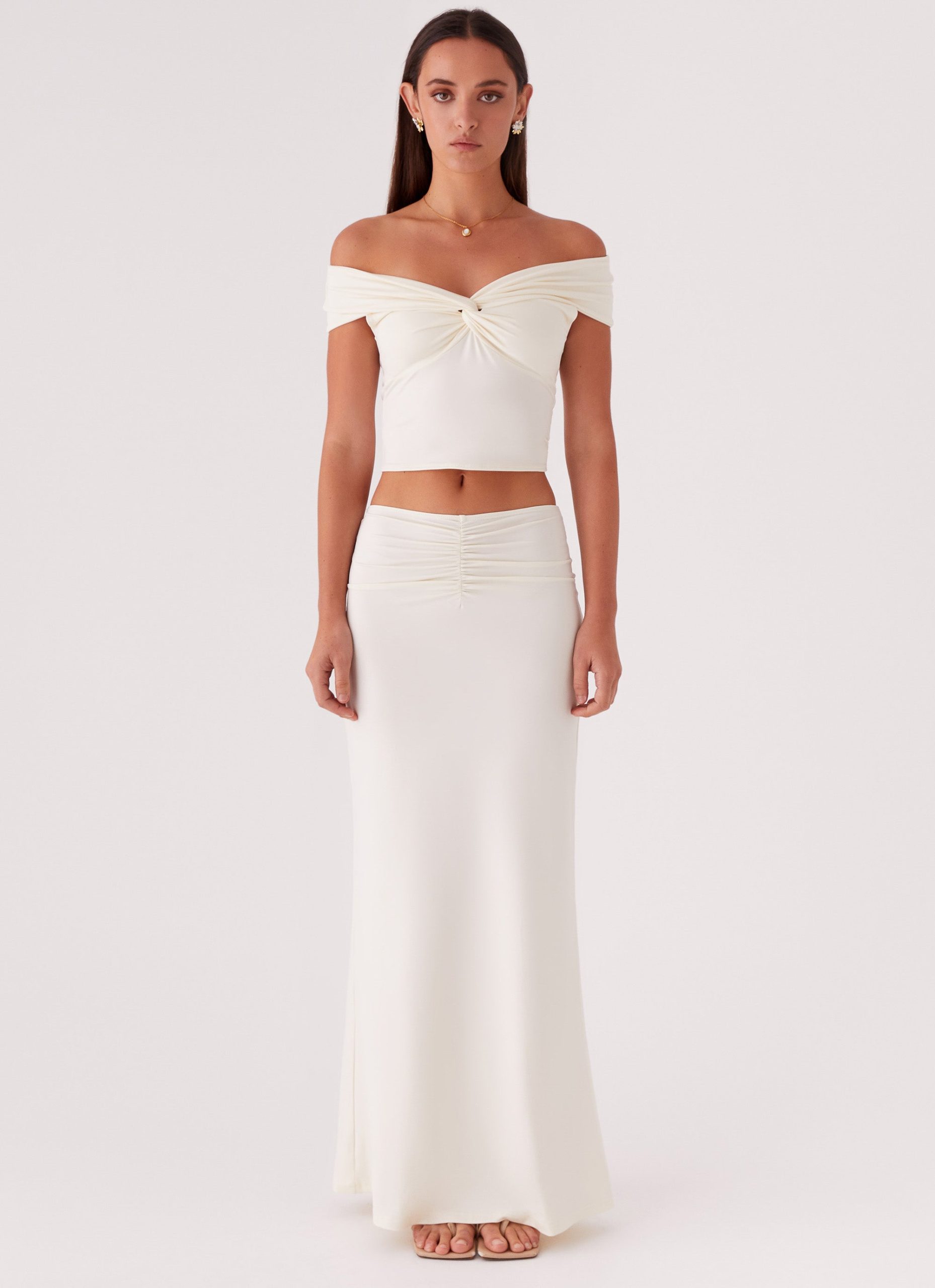 Make a statement with the Trixie Twist-Off Shoulder Top. Featuring an alluring off-the-shoulder neckline. this top exudes effortless sophistication and charm. The twist-bust feature adds a touch of intrigue and dimension. ensuring you stand out from the crowd with style.