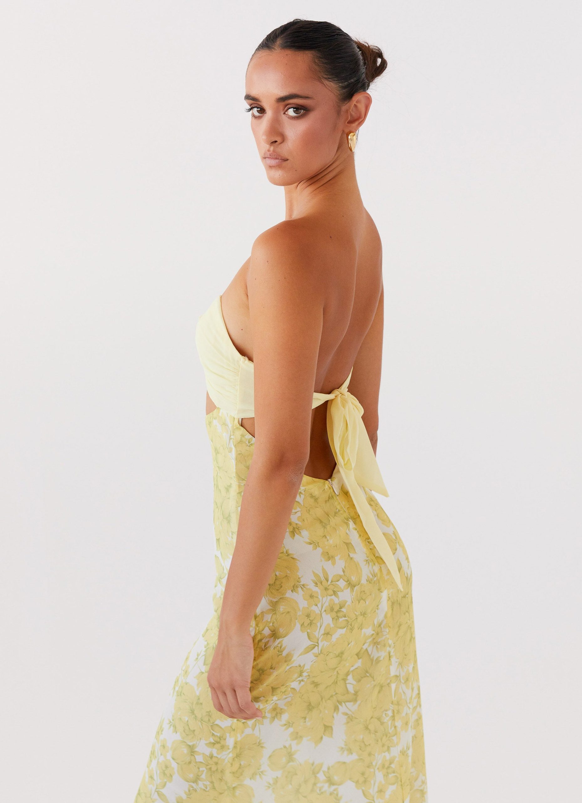 Introducing our Tropicana Maxi Dress – a strapless beauty in our exclusive print. Radiant yellow. playful florals. and a breezy maxi design make it a versatile statement piece for any occasion. Elevate your style effortlessly.