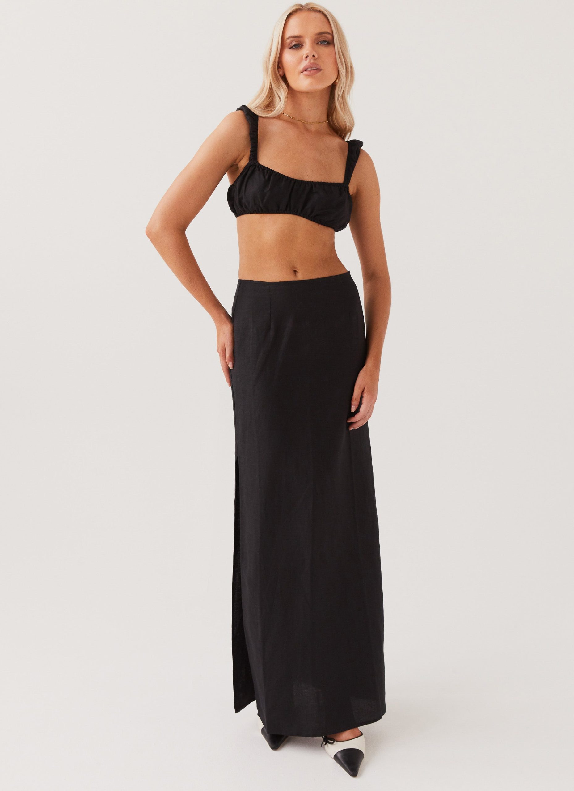The ‘Valencia Villa Bralet Top’ is a wardrobe staple. cut from a soft cotton/linen blend. Pair it with the matching ‘Valencia Villa Maxi Skirt’ and heels for a captivating look that is sure to turn heads wherever you go.