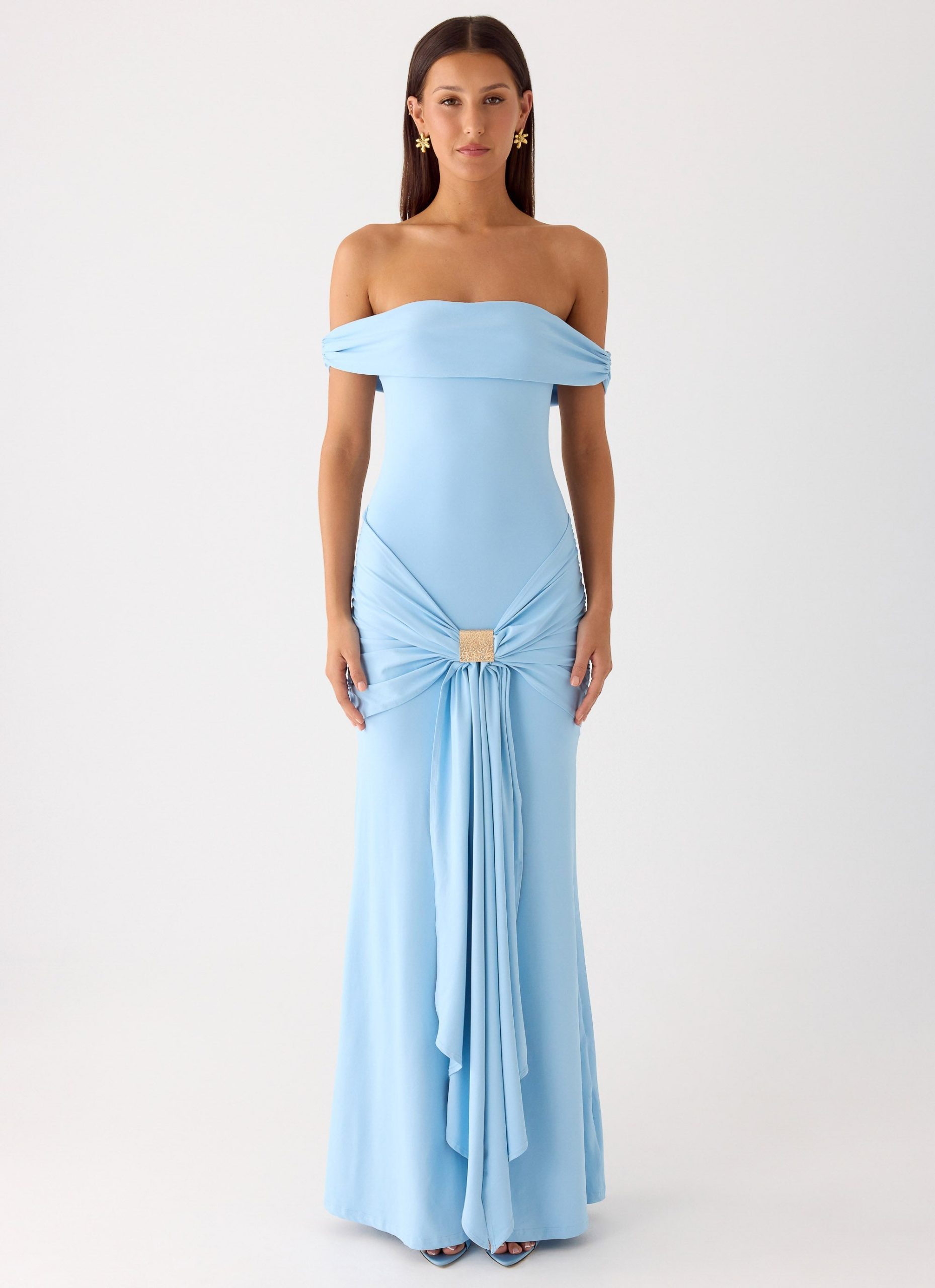 Be the first to review “Vee Bardot Maxi Dress – Blue”