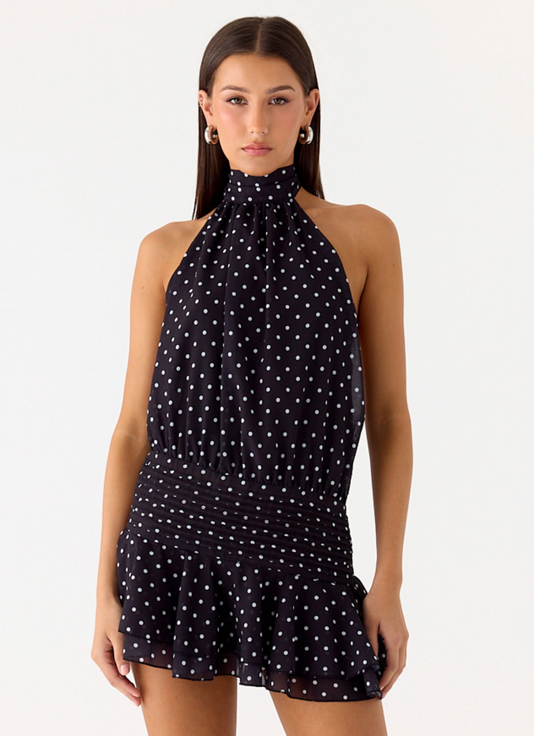 Willow Chiffon Mini Dress – Black Polkadot
