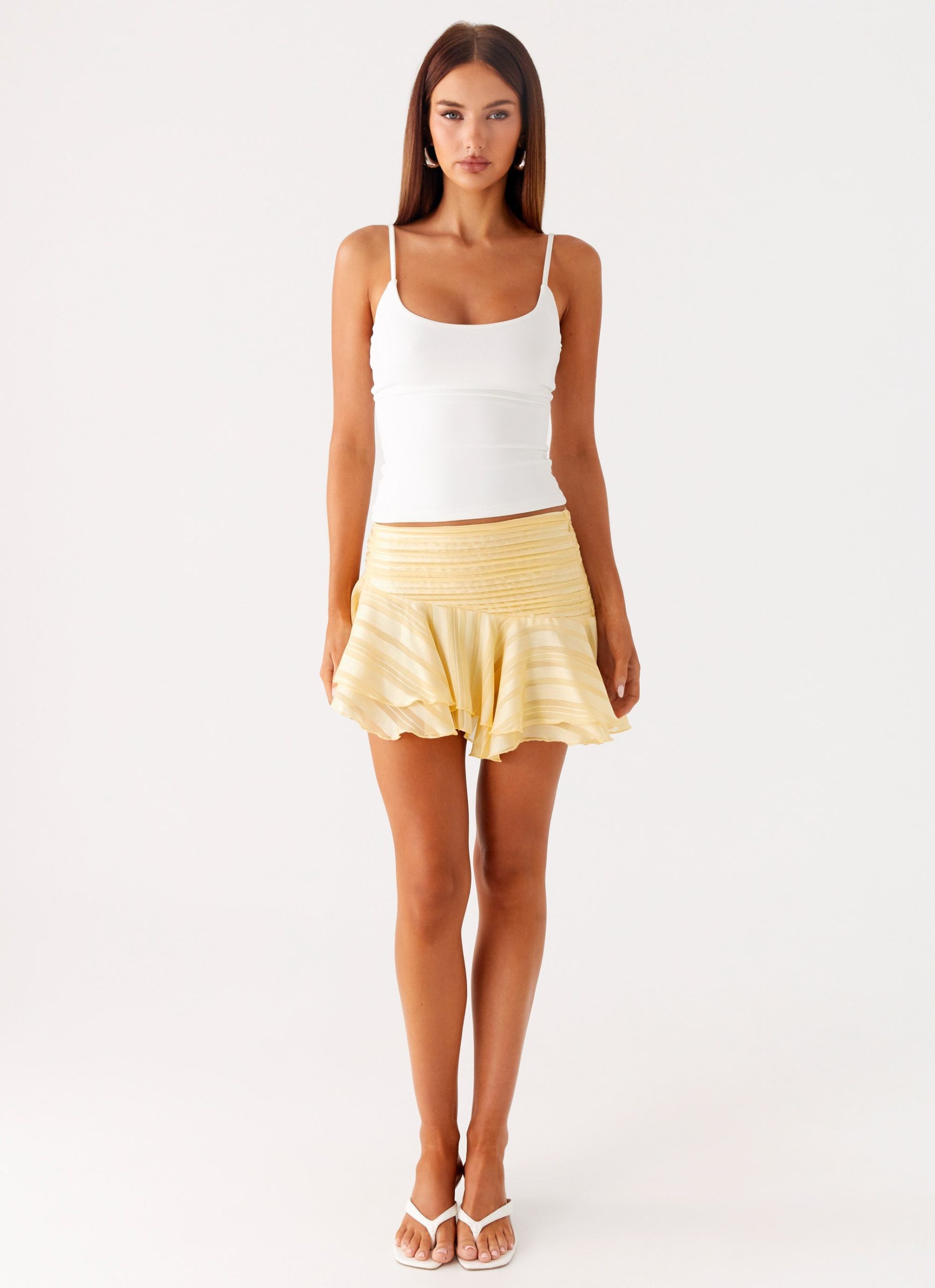 Flirty and feminine. the Willow Chiffon Mini Skirt is your new go-to for elevated summer styling. Designed in lightweight chiffon. this dreamy mini sits low on the waist and features an asymmetrical waistline. pleated waistband. and tiered flare silhouette. The bias cut and asymmetrical hemline add effortless movement. making it perfect for day-to-night dressing.