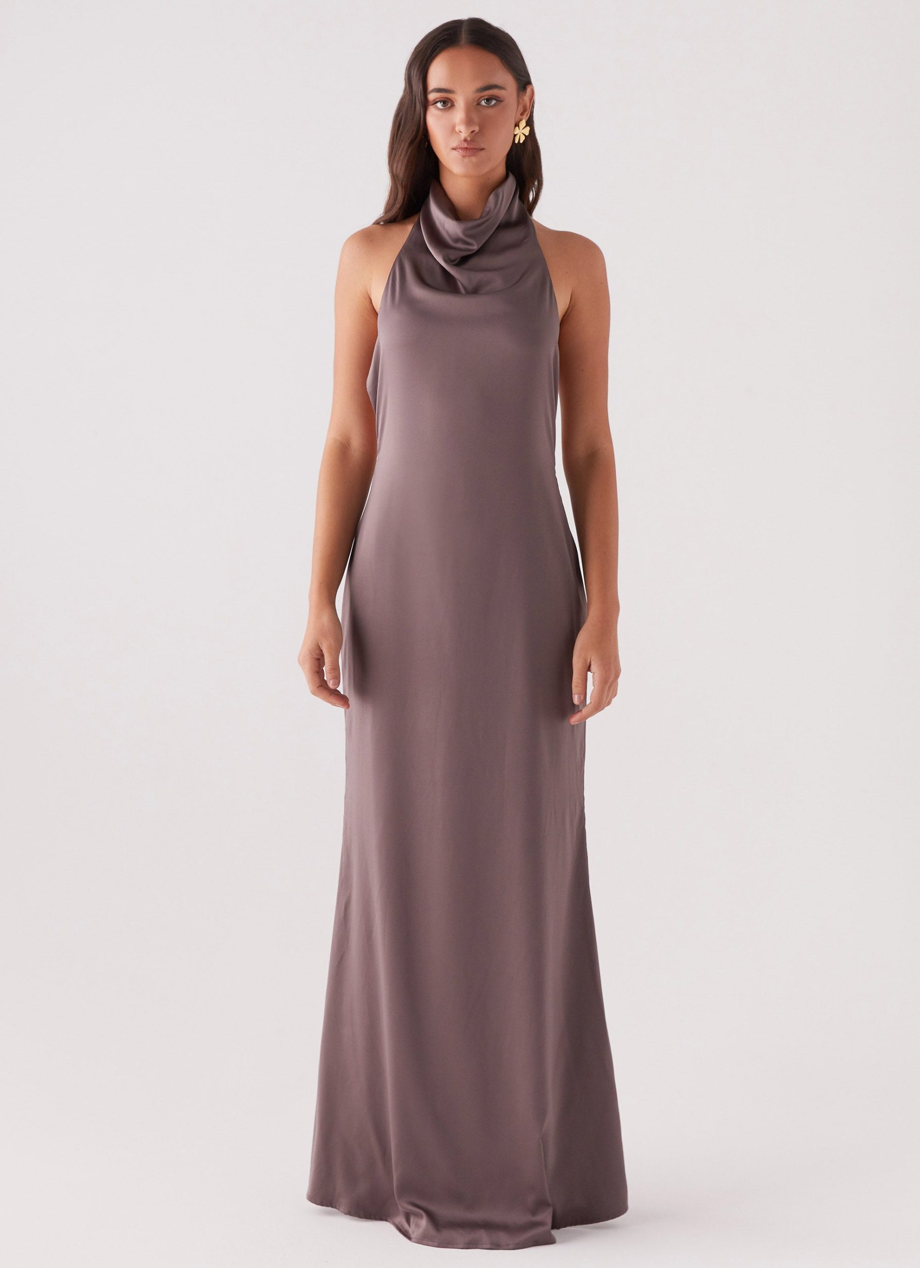 Elevate your evening ensemble with the Wynn Satin Maxi Dress. With its elegant halter neckline and alluring open low back. it sets the stage for an evening filled with sophistication and style.